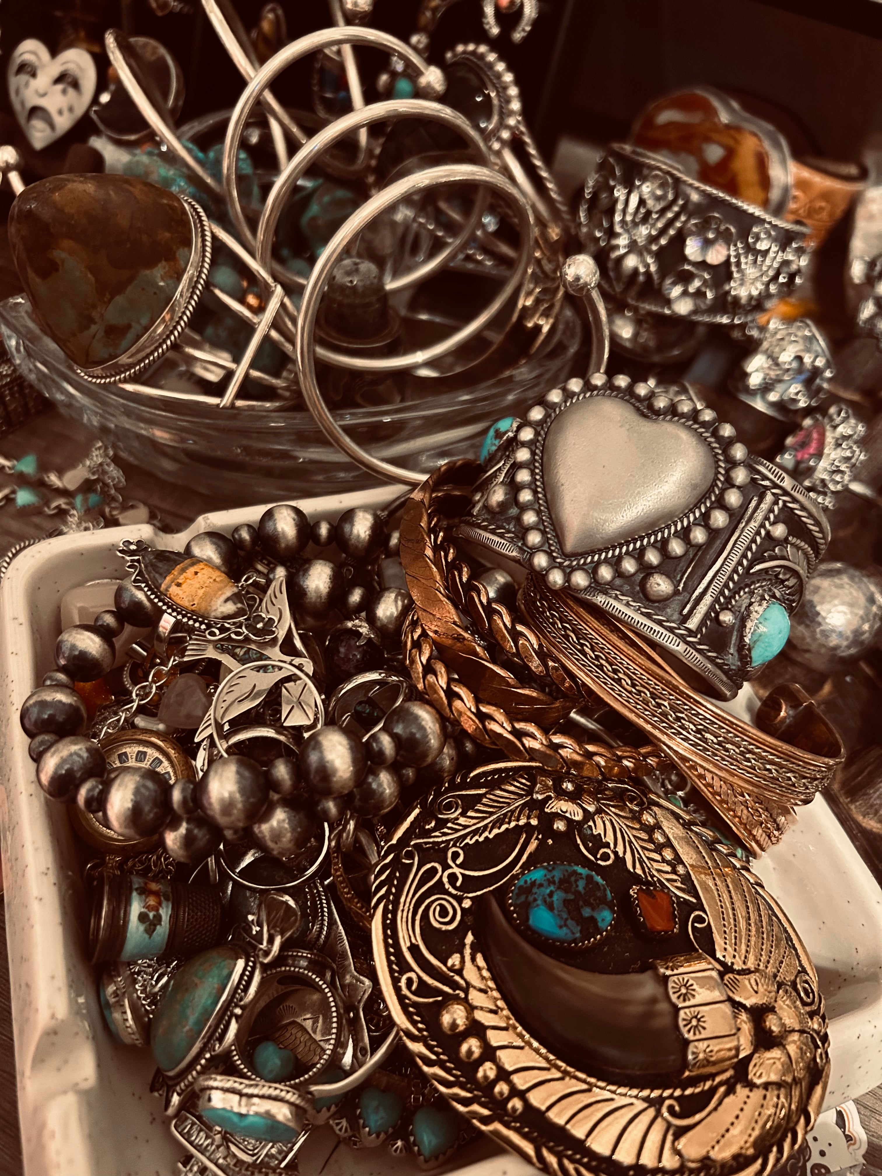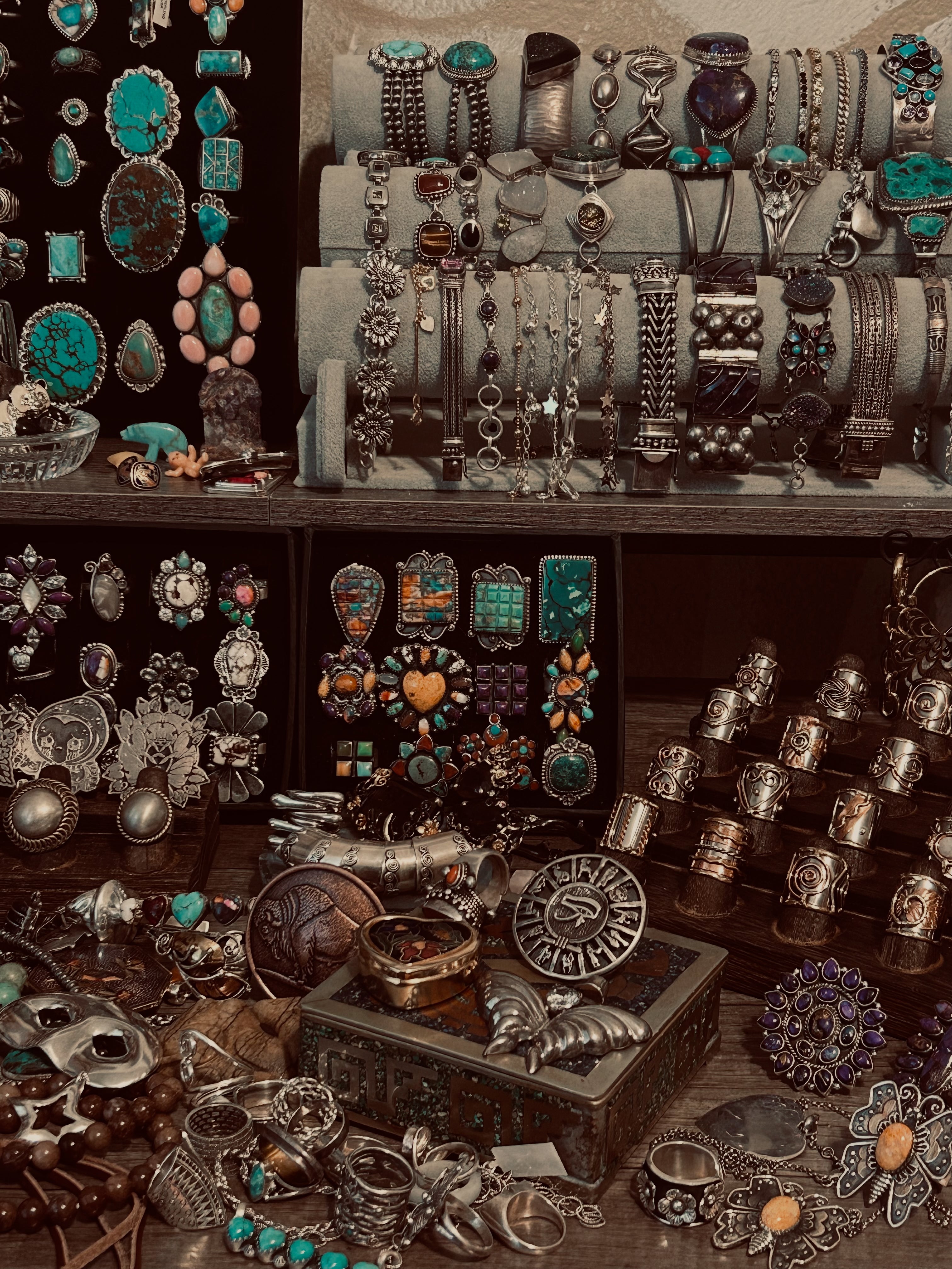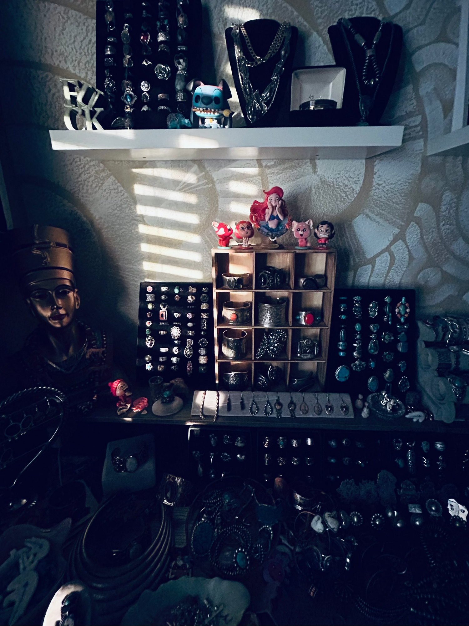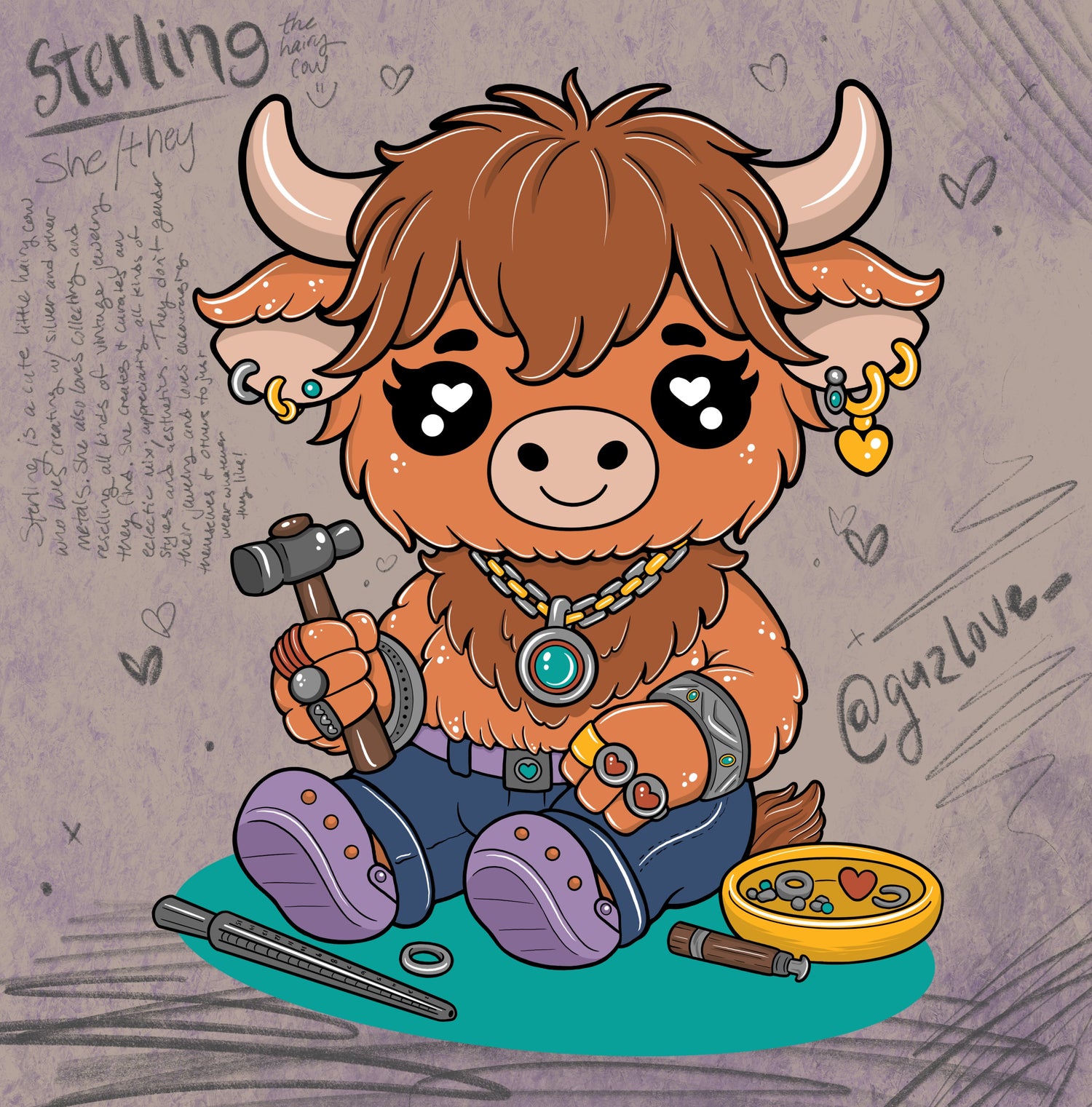 Sterling is a cute little hairy cow, who loves creating with silver and other metals.She also loves collecting and reselling all kinds of vintage jewelry they find. She creates and curates an eclectic mix; appreciating all kinds of styles and aesthetics. They don't gender their jewelry and loves encouraging themselves and others to just wear what they like!