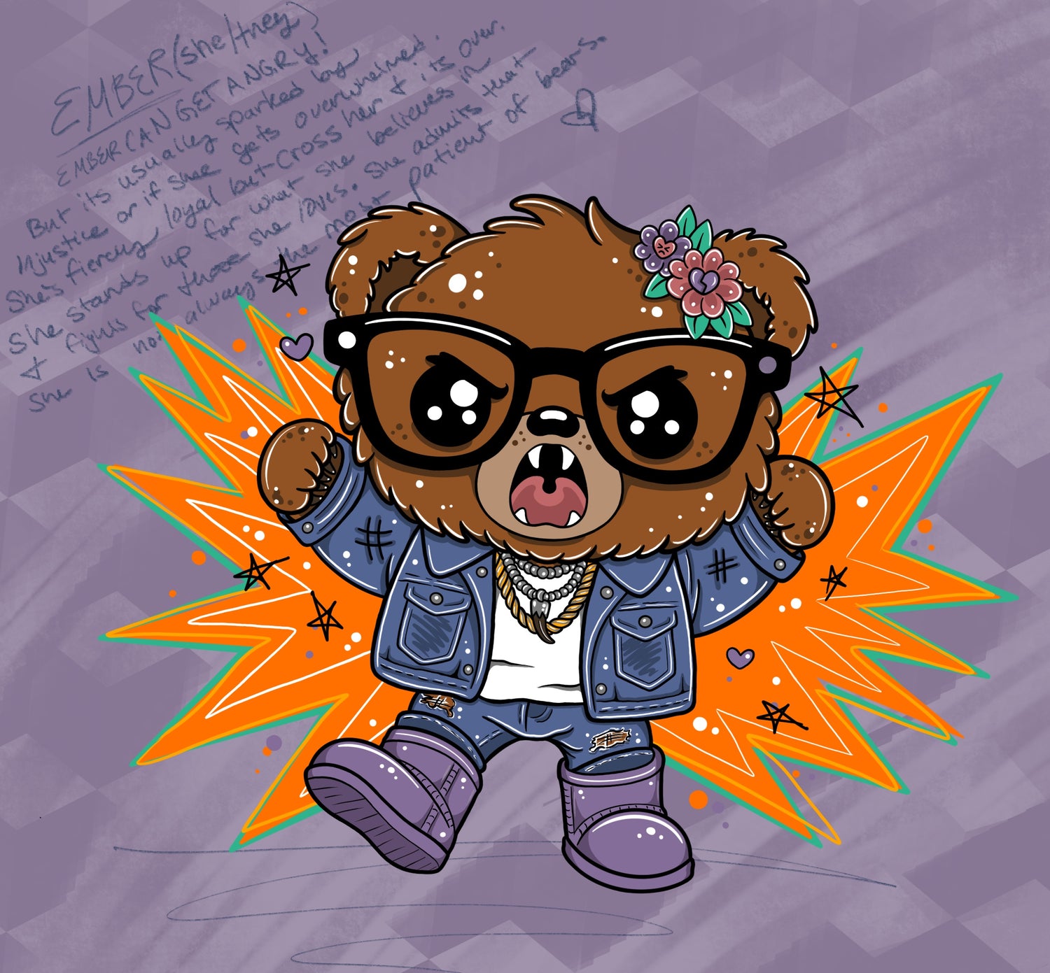 (she/they) Ember CAN GET ANGRY! But it's usually sparked by injustice or if she gets overwhelmed. She is fiercely loyal but cross her and it's over. She stands up for what she believes in and fights for those she loves. She admits that she is not always the most patient of bears...