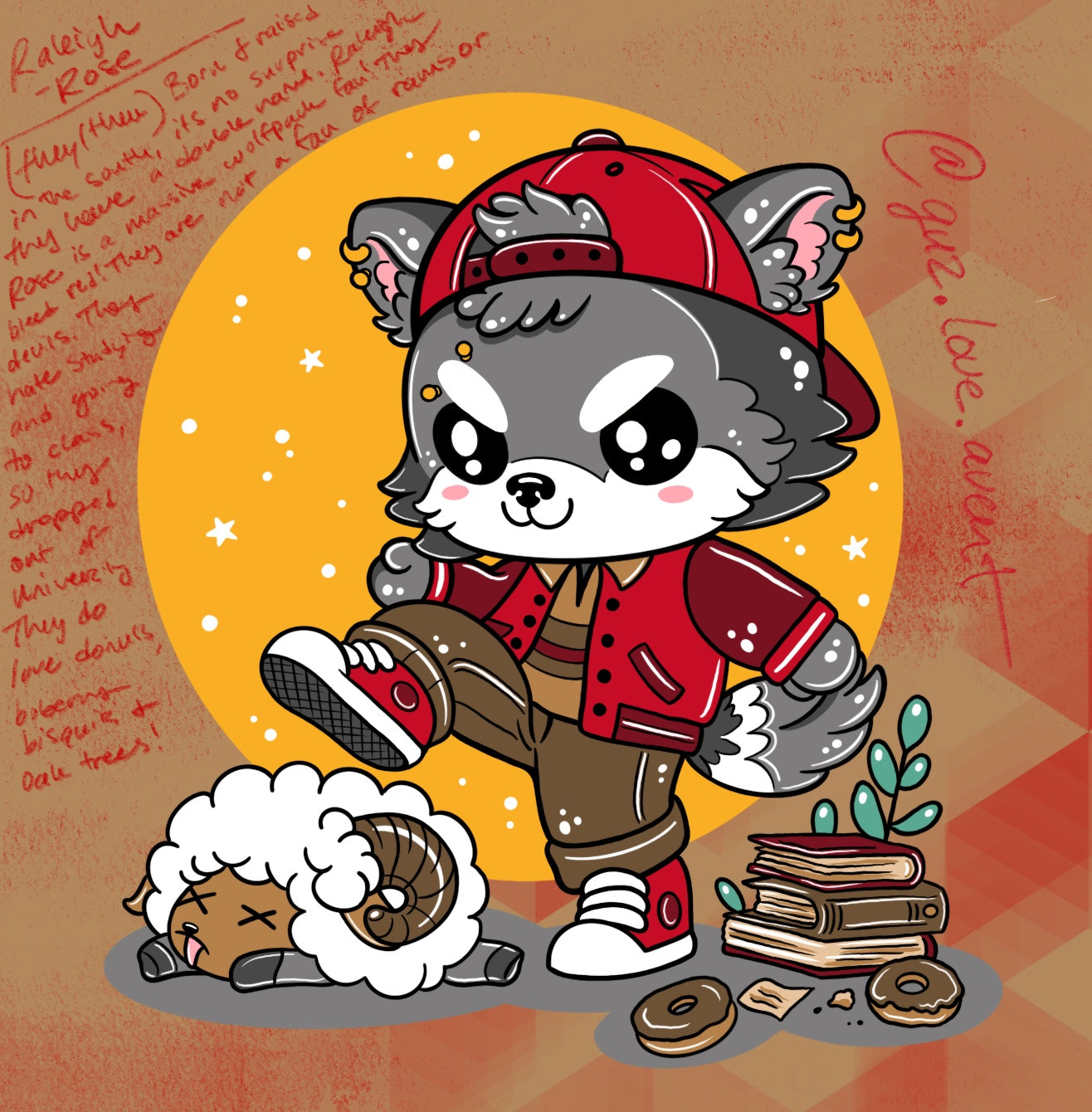 (they/them) Born and raised in the South, it's no surprise Raleigh-Rose has a double name. They are a massive wolfpack fan! They bleed red! They do not like rams or devils. They hate studying and going to class, so they dropped out of University. They do love donuts, boberry biscuits, and oak trees!