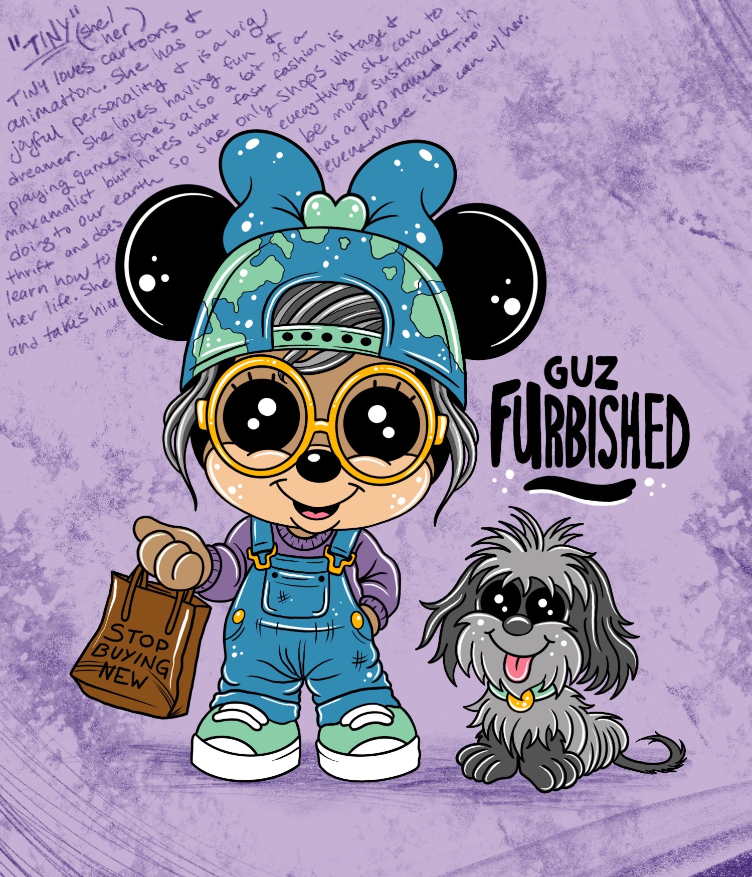 (she/her) Tiny loves cartoons and illustration. She has a joyful personality and is a big dreamer. She loves having fun and playing games. She's also a bit of a maximalist but hates what fast fashion is doing to our earth, so she shops vintage and thrift and does everything she can to learn how to be more sustainable. She has a pup named, Tito, and takes him with her everywhere she can.