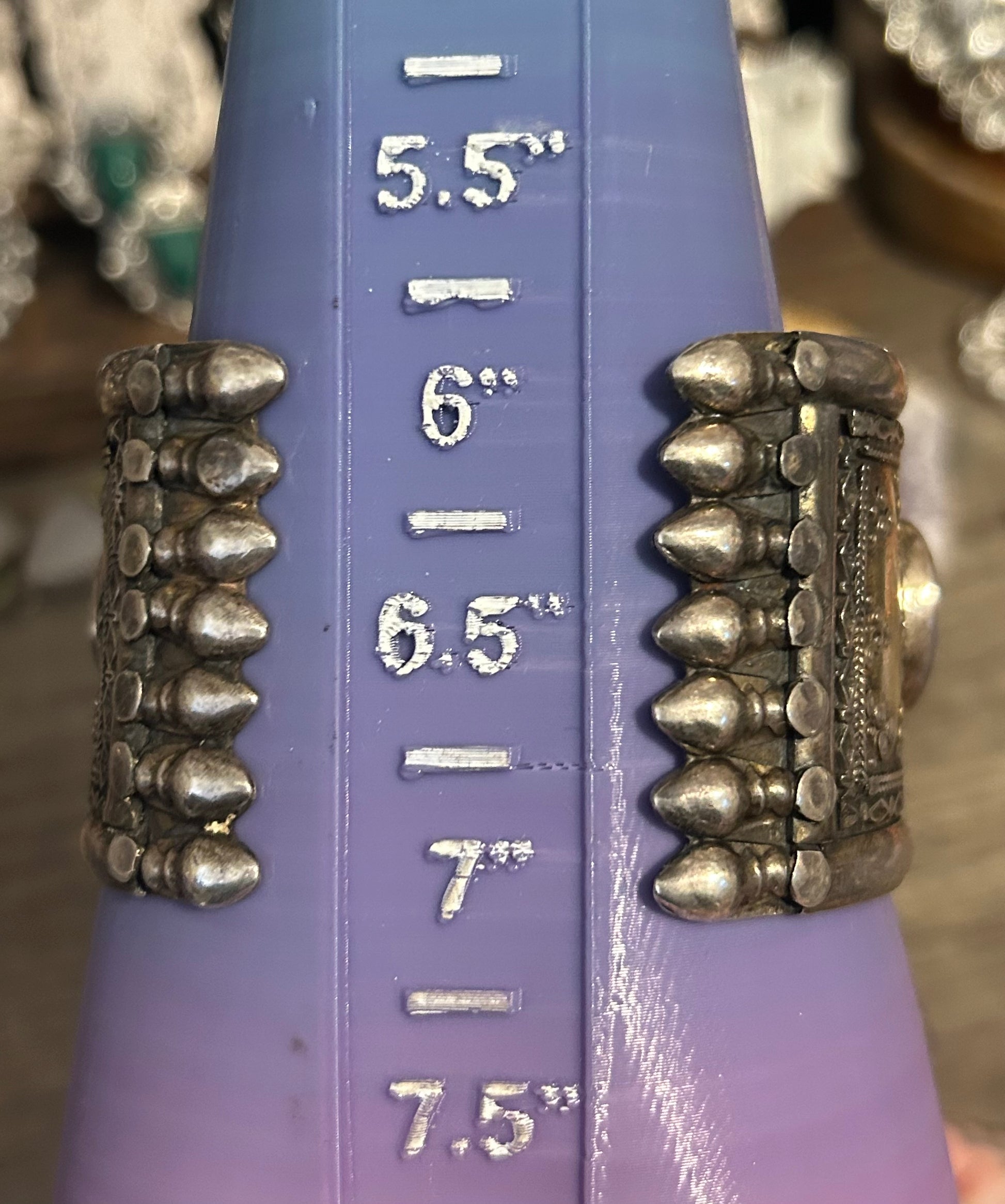 Gorgeous antique Turkish cuff! Beautiful detailing on this piece and carnelian stones. Sterling silver 925 tested with some gold tone accents over.