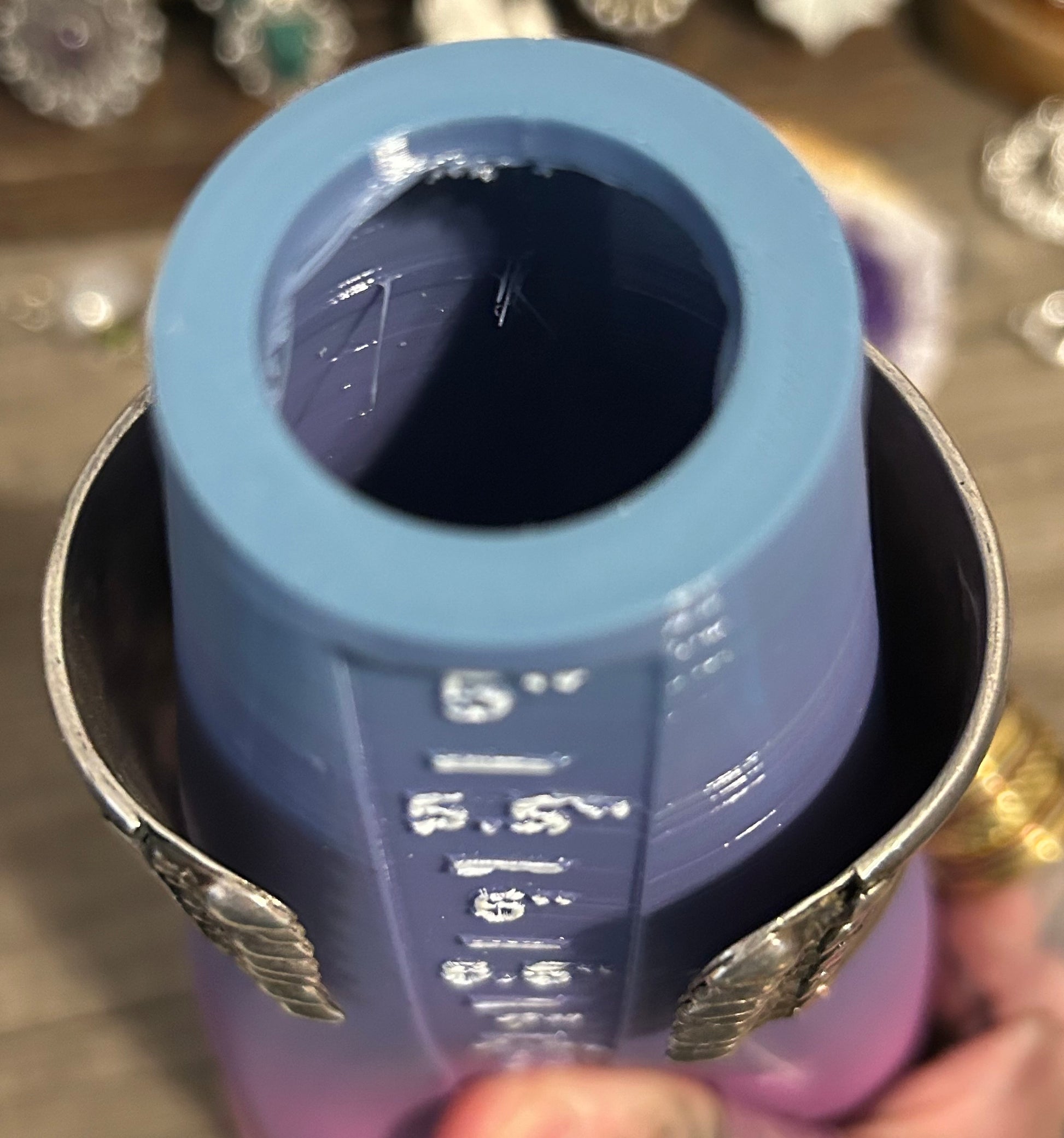 Fits around 6.5-6.75 wrist. You can see on the sizer it very wide but there a little space in between the cuff and sizer.