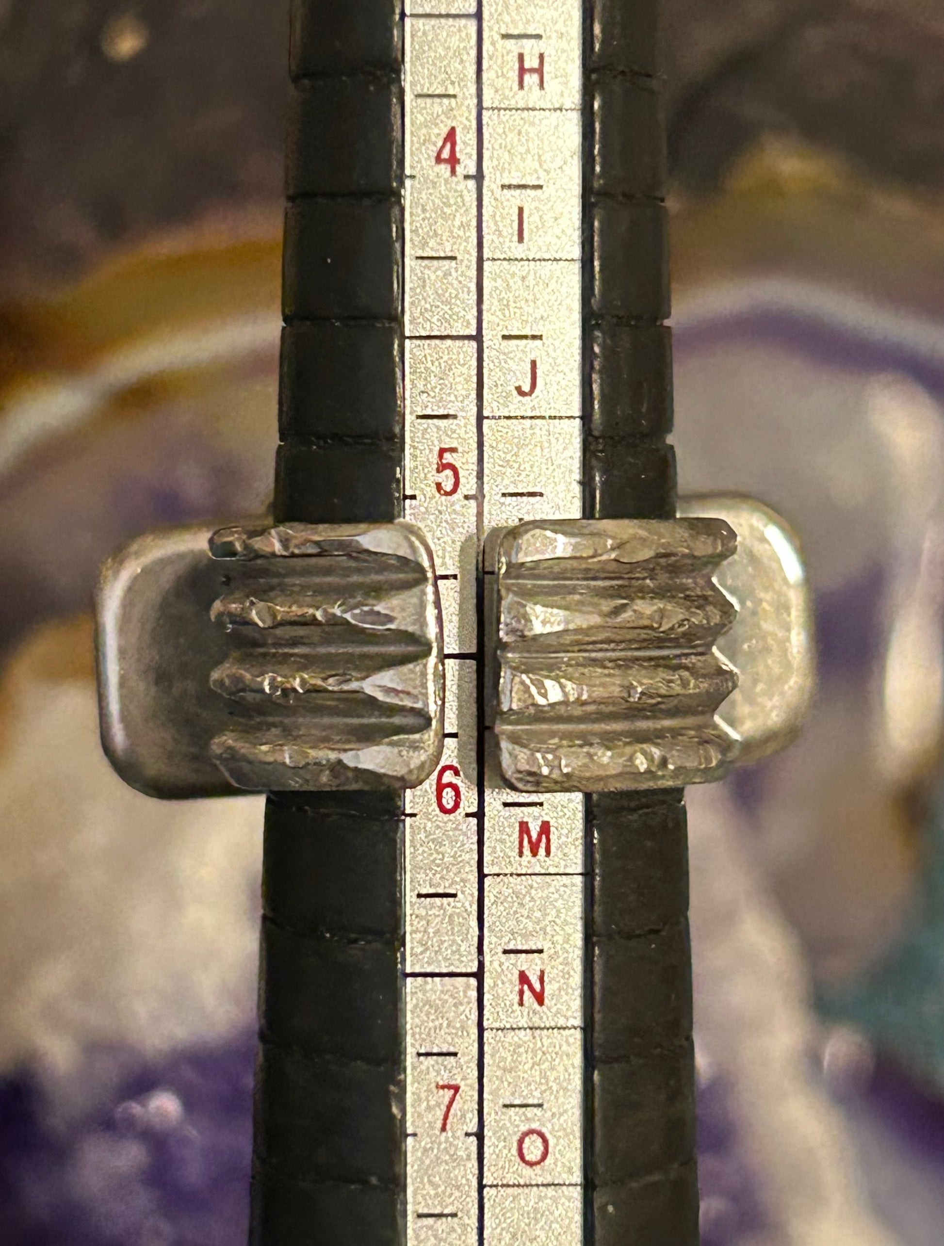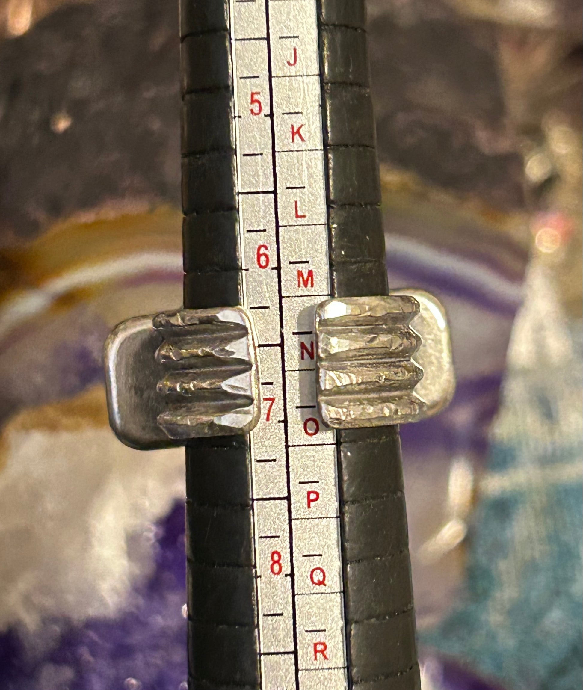 Custom handmade textured band that can be adjusted best from sizes 5-6.5.