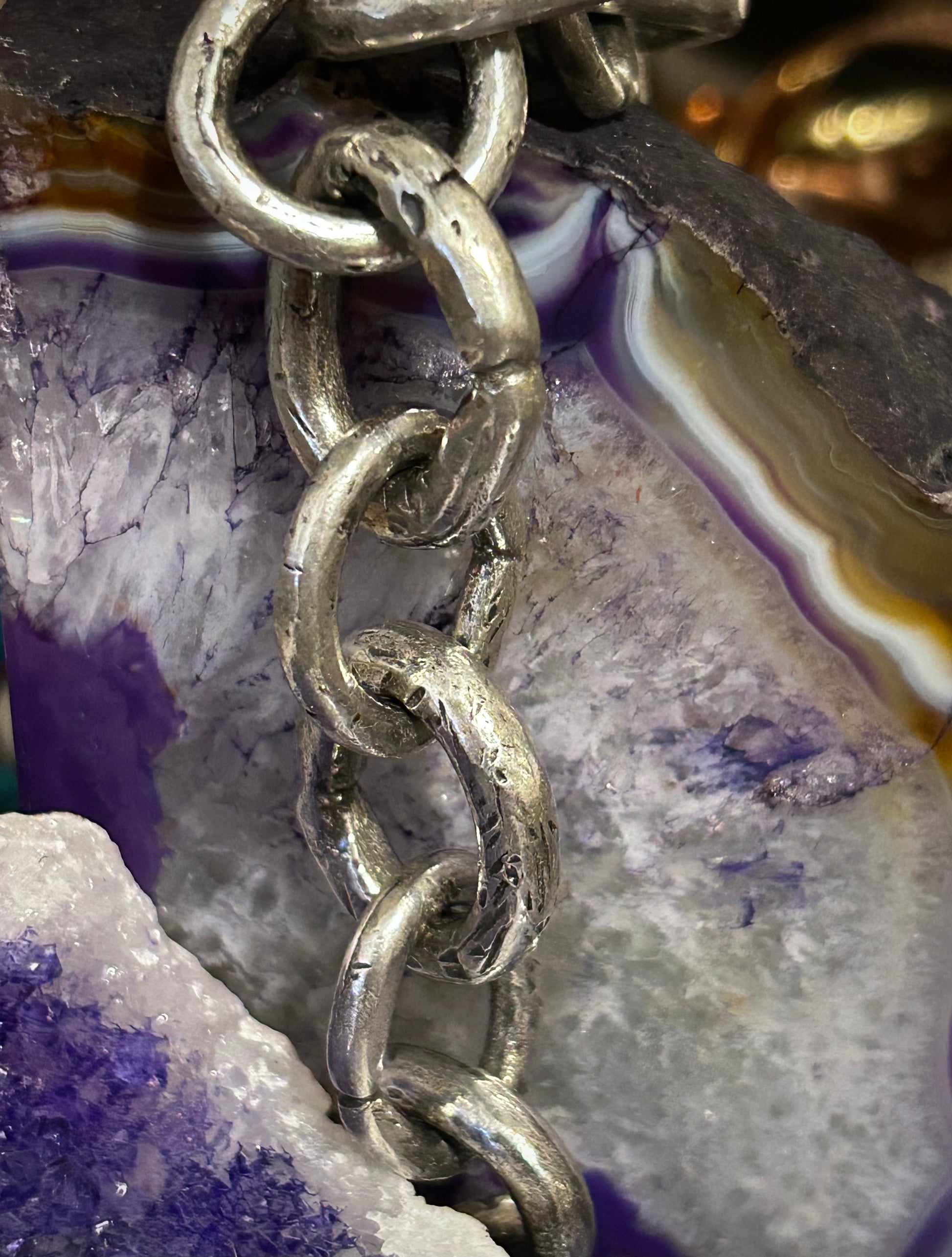 Made from scratch by Guz, using recycled silver. Thick solid links handcrafted by Guz with gorgeous texture for a beautiful gritty look.