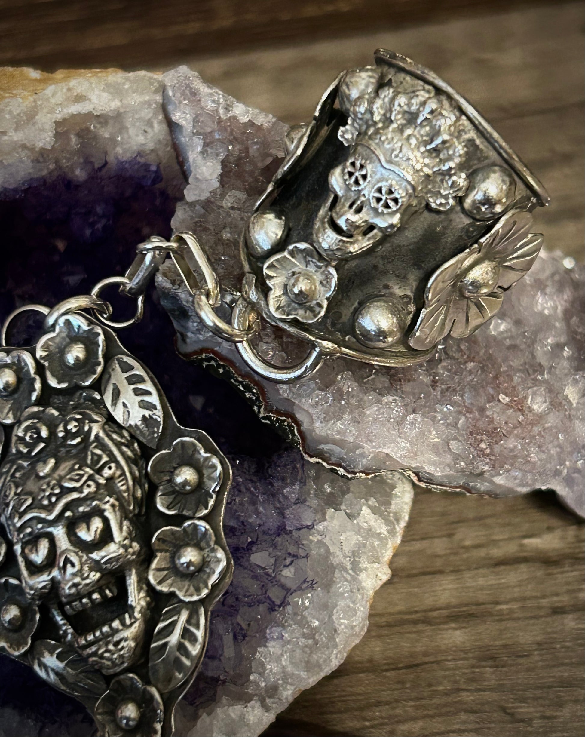 GuzFurbished x Taxco Sterling Silver Day of the Dead Hand-harness Bracelet Set