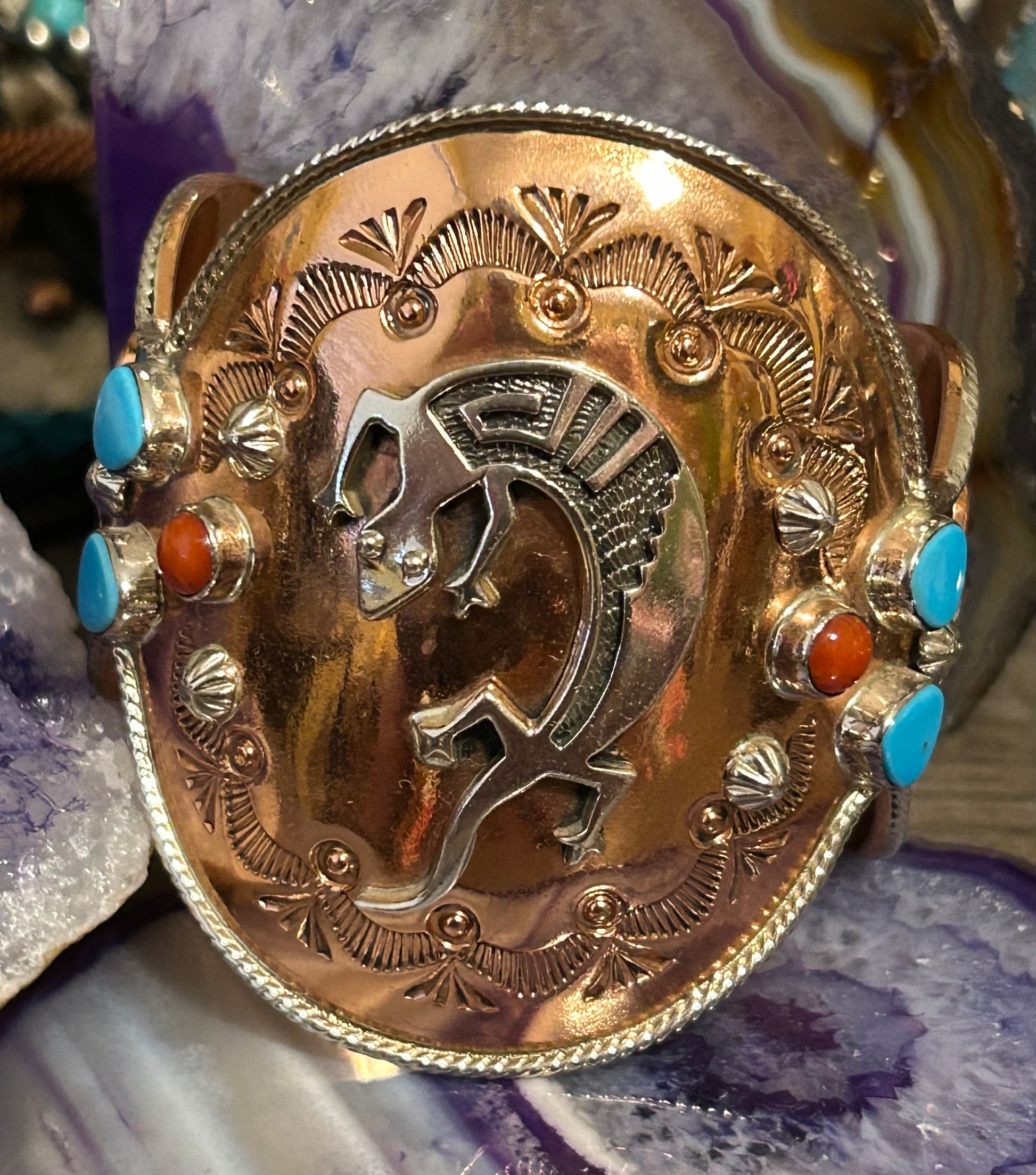 Running Bear Native American Copper & Sterling Silver Gecko/Lizard Cuff Bracelet