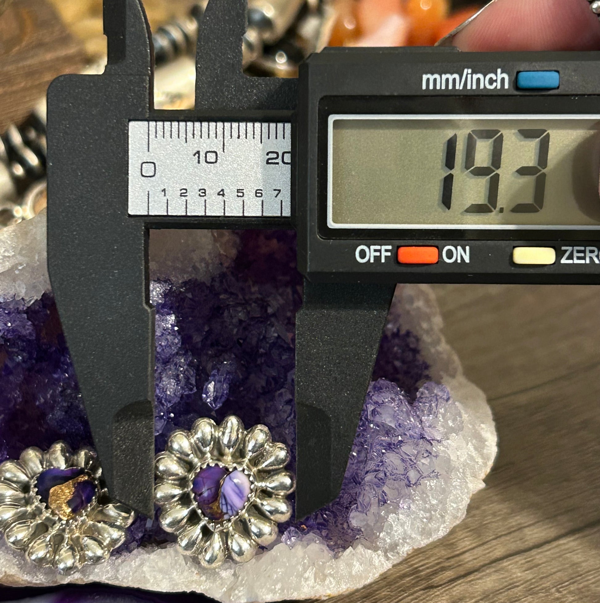 Southwestern Sterling Silver Violet Dahlia Turquoise Heart Earrings