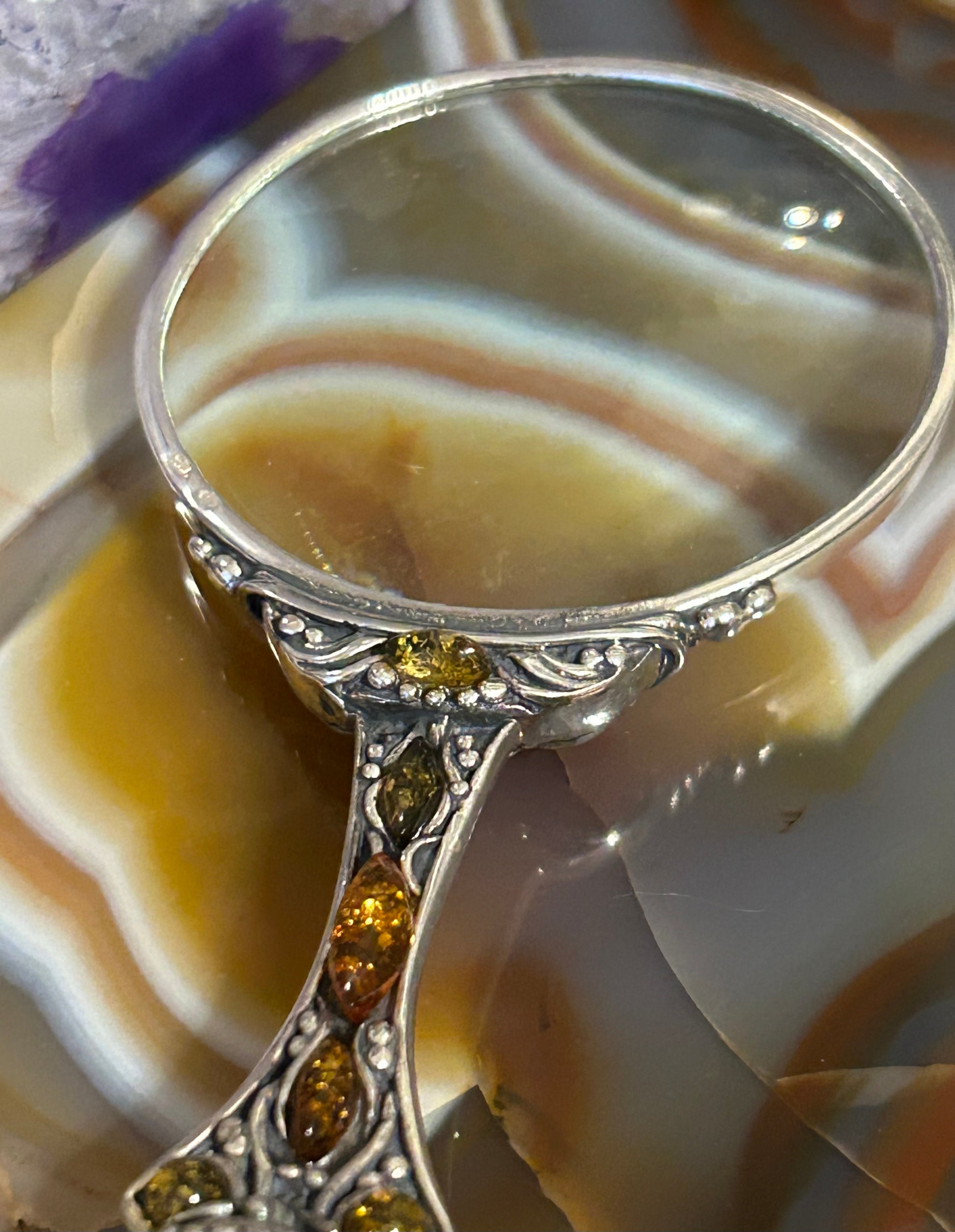 Sterling Silver & Baltic Amber Magnifying Glass Pendant