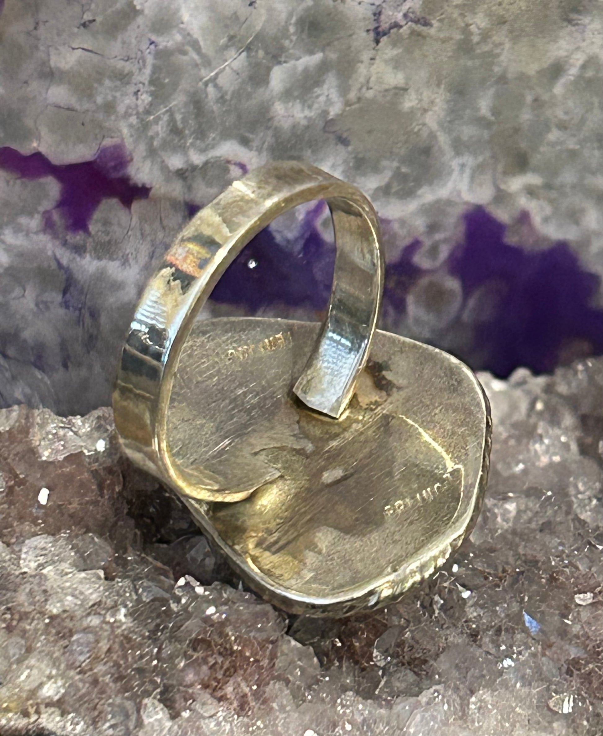 Gorgeous handmade ring, sterling silver tested. Beautiful ring from an estate with pretty green turquoise stone.