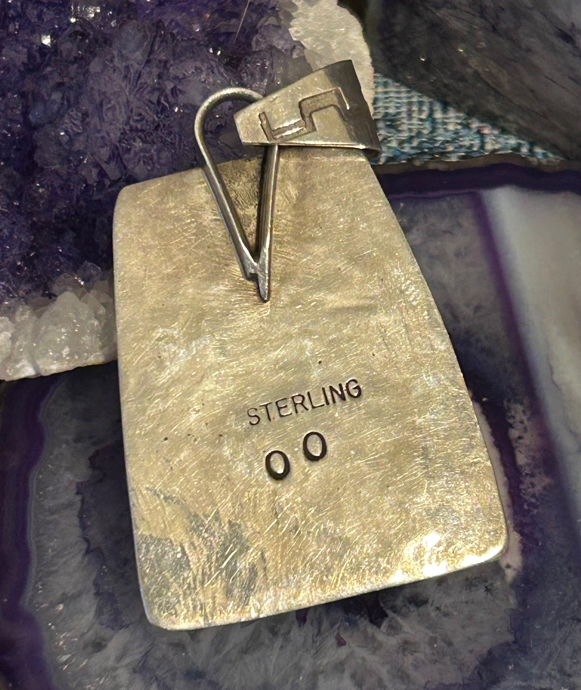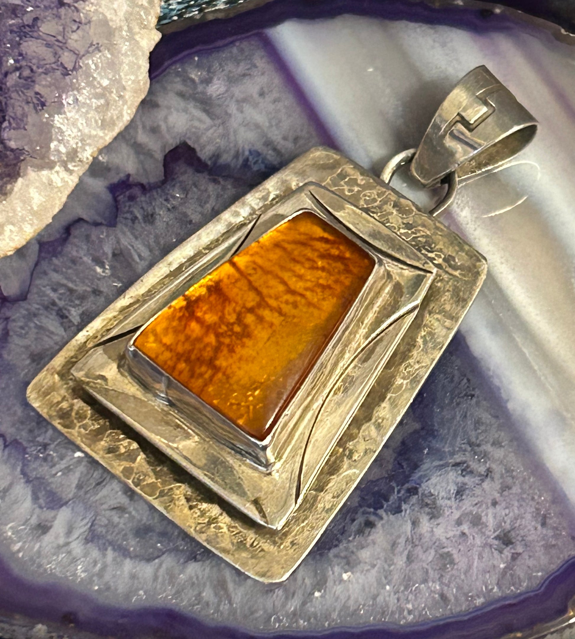 Sterling Silver Native American Baltic Amber Large Pendant Signed OO