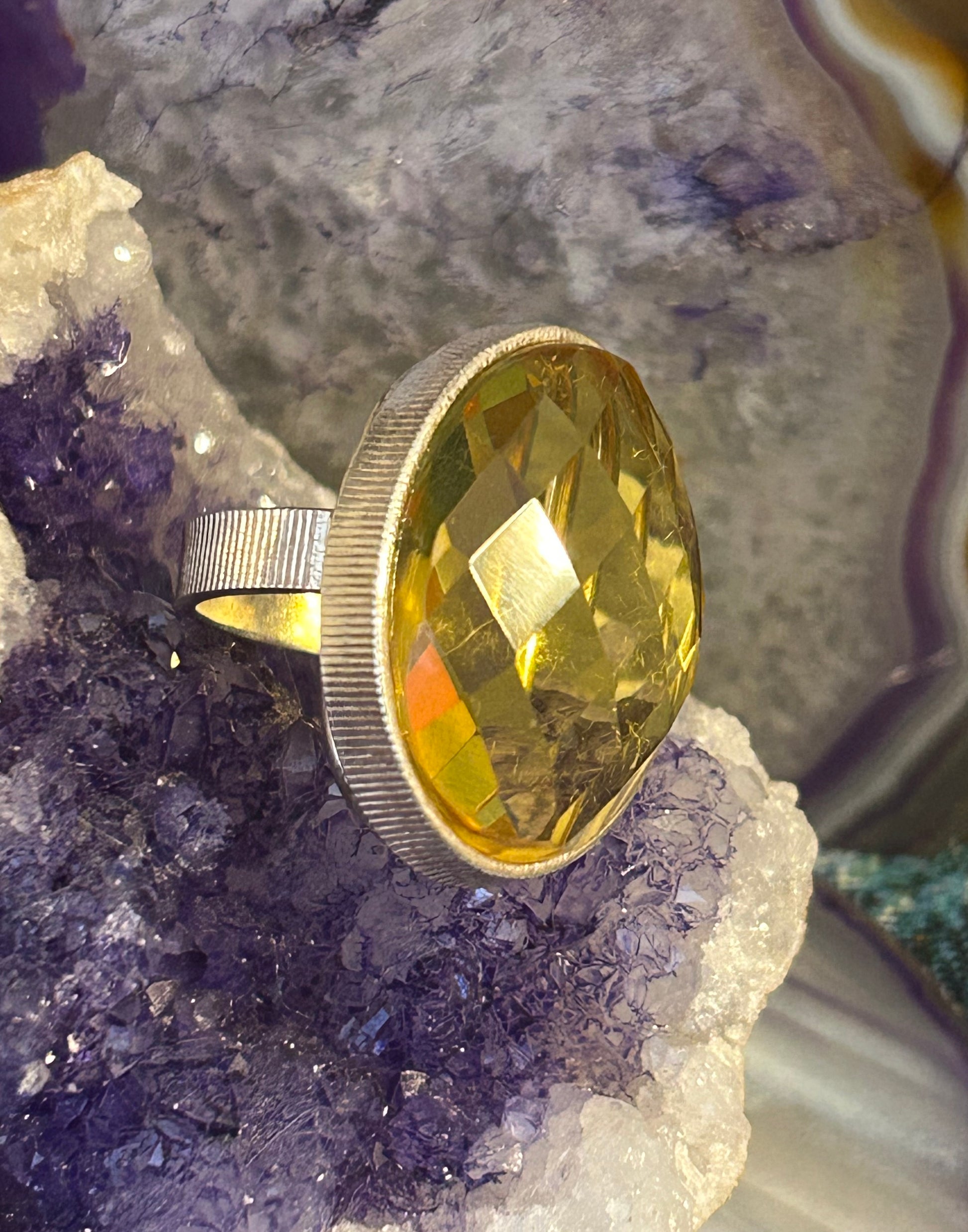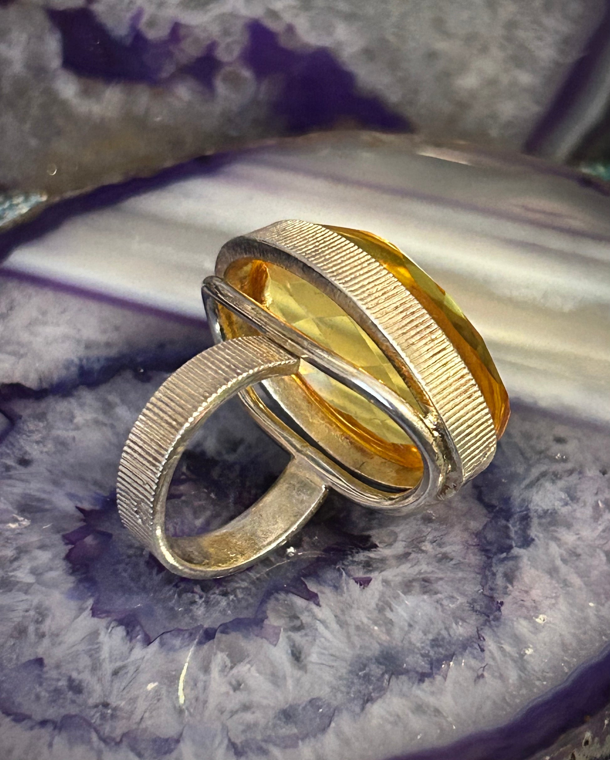 Sterling Silver Natural Citrine Faceted Amber Large Ring Adjustable