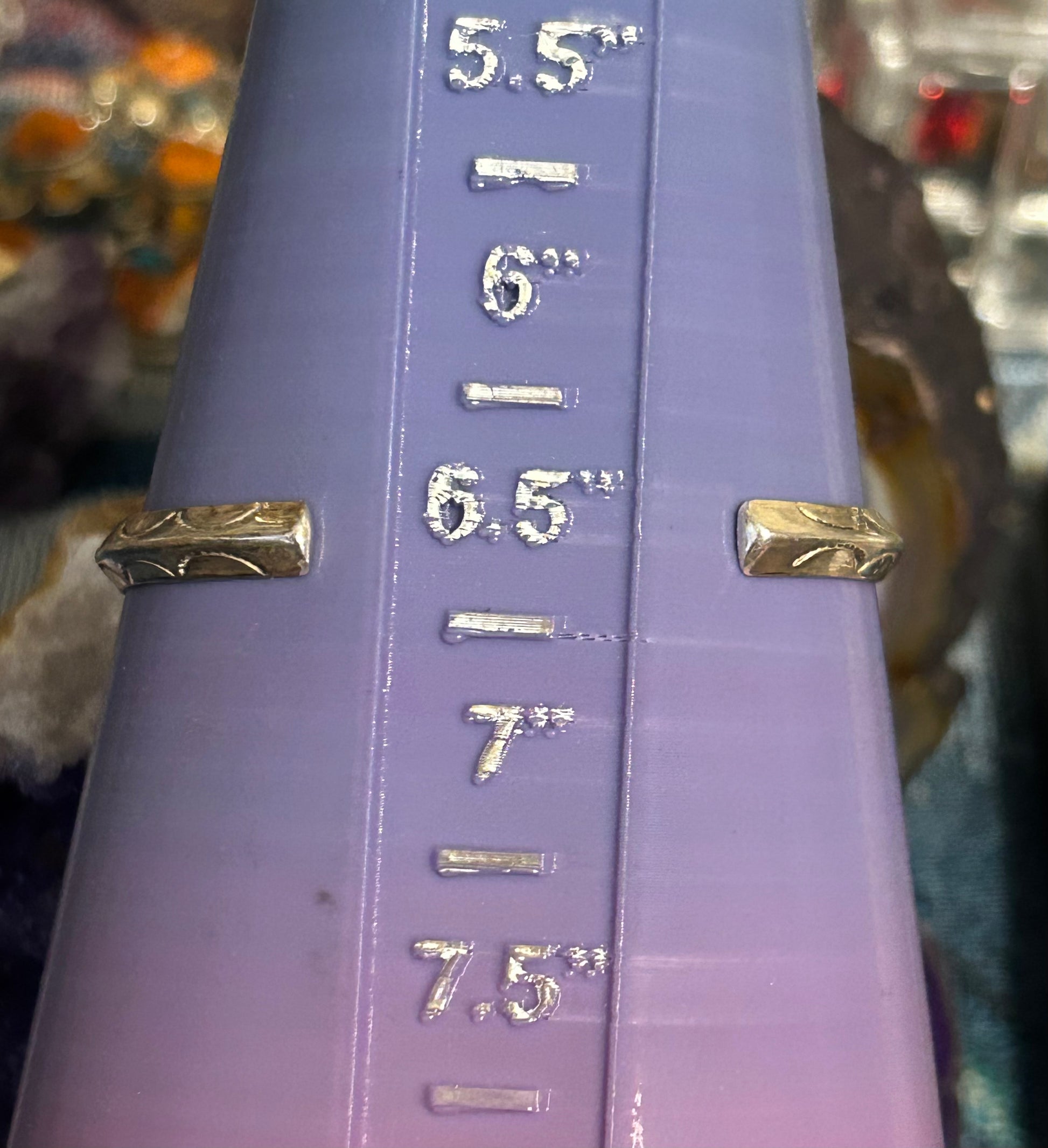 Nice thick silver, but it does have a little flex it could do, so could fit best sizes 6.25-6.75.