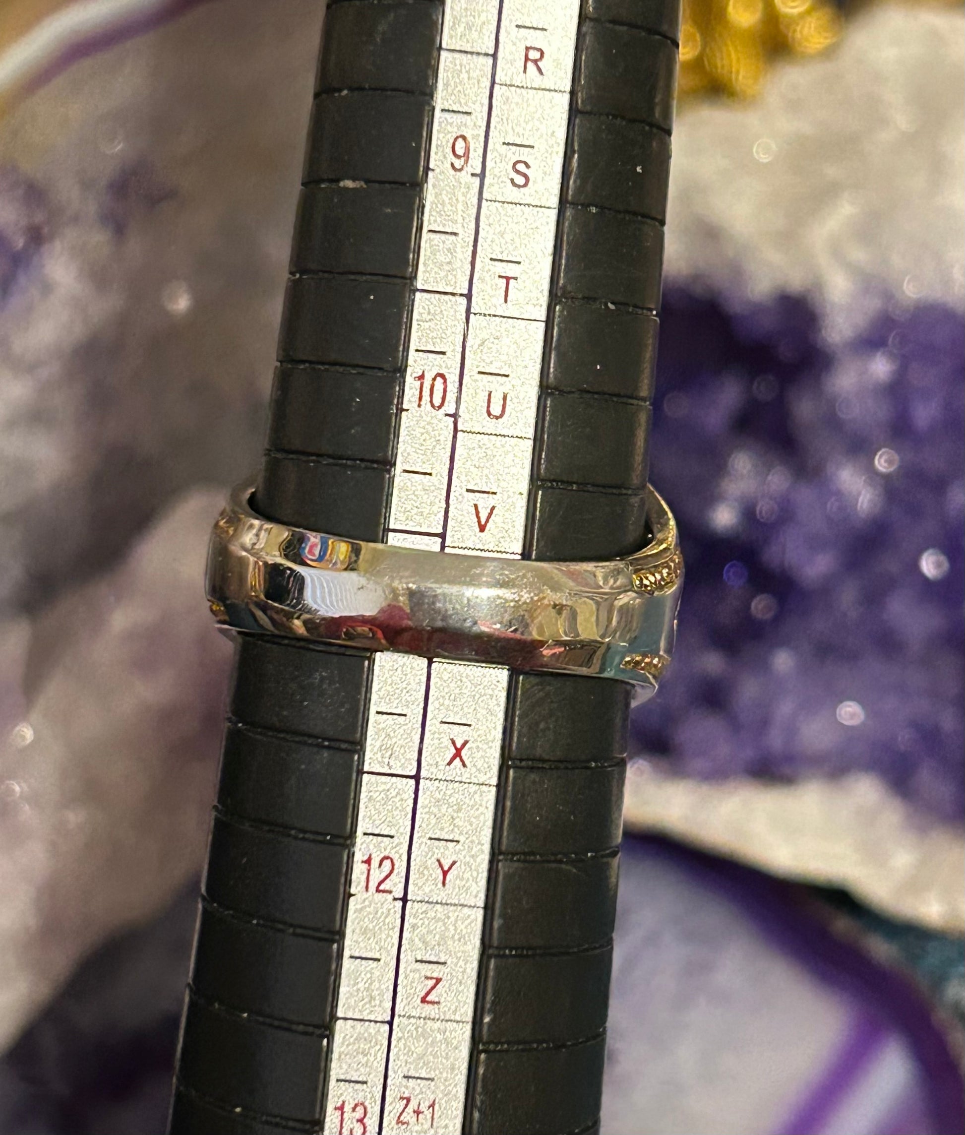 Sterling Silver NH Designer Purple Golden Rutilated Quartz & Amethyst Ring Size 11