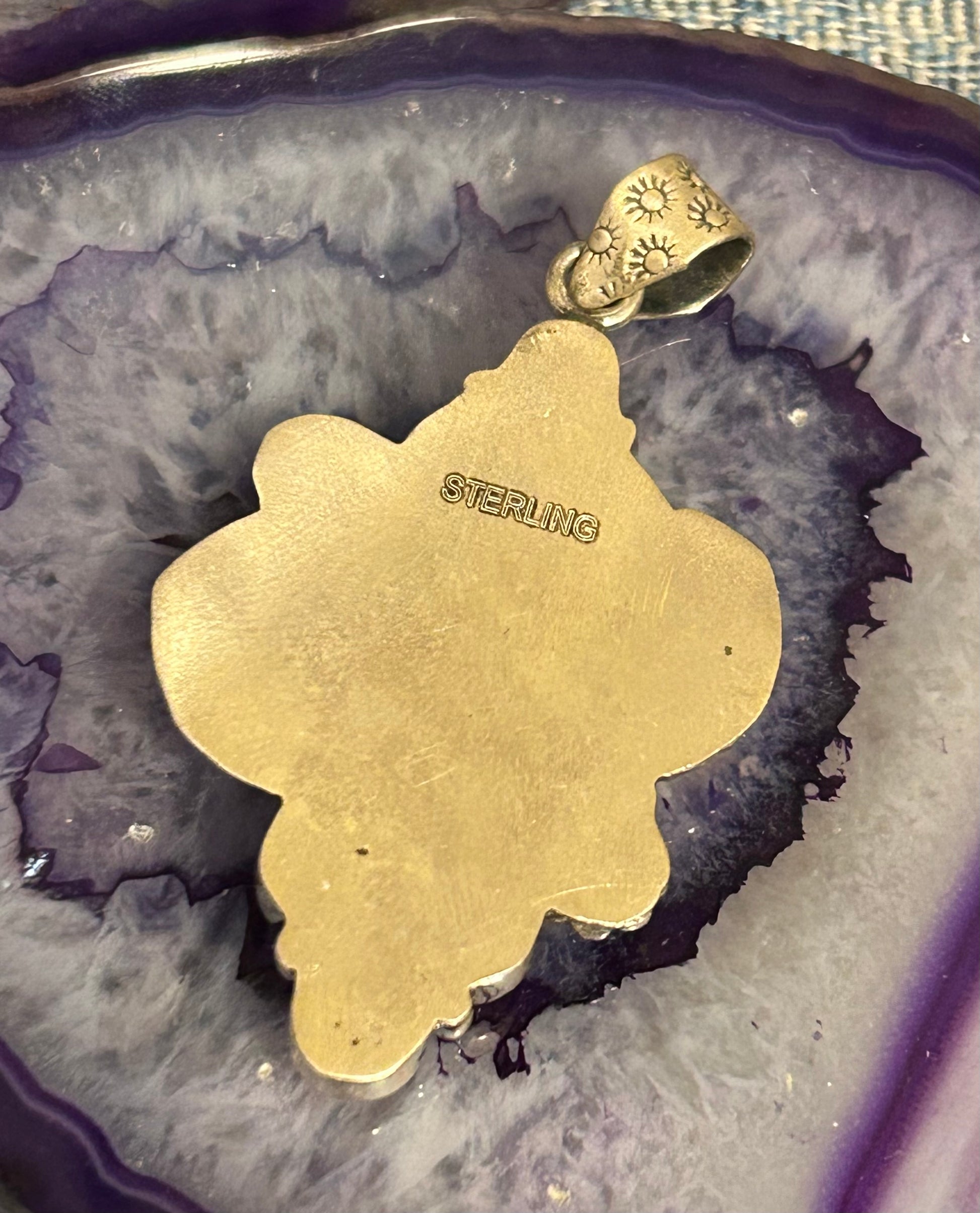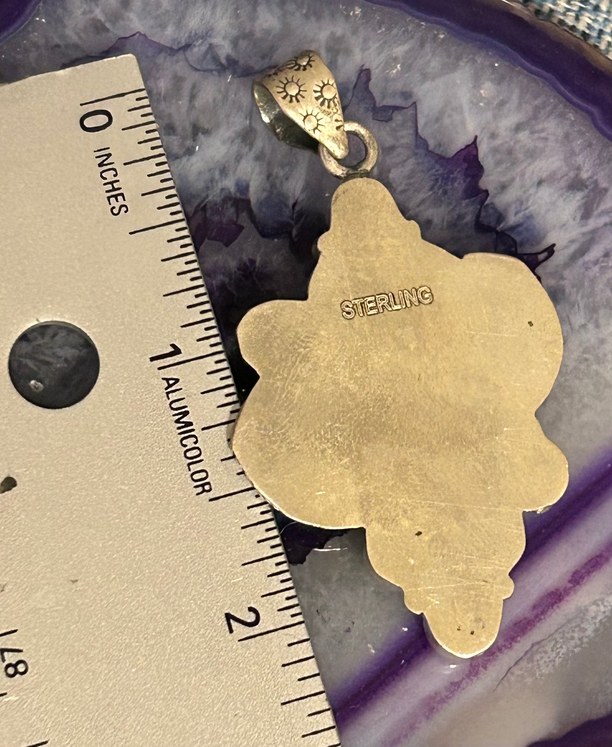 Beautiful sterling silver 925 pendant with green turquoise heart and surrounding bumblebee Jasper stones. A nice long pendant, see next to ruler in photos along with the size of the bale. Carefully sourced and curated by Guz |