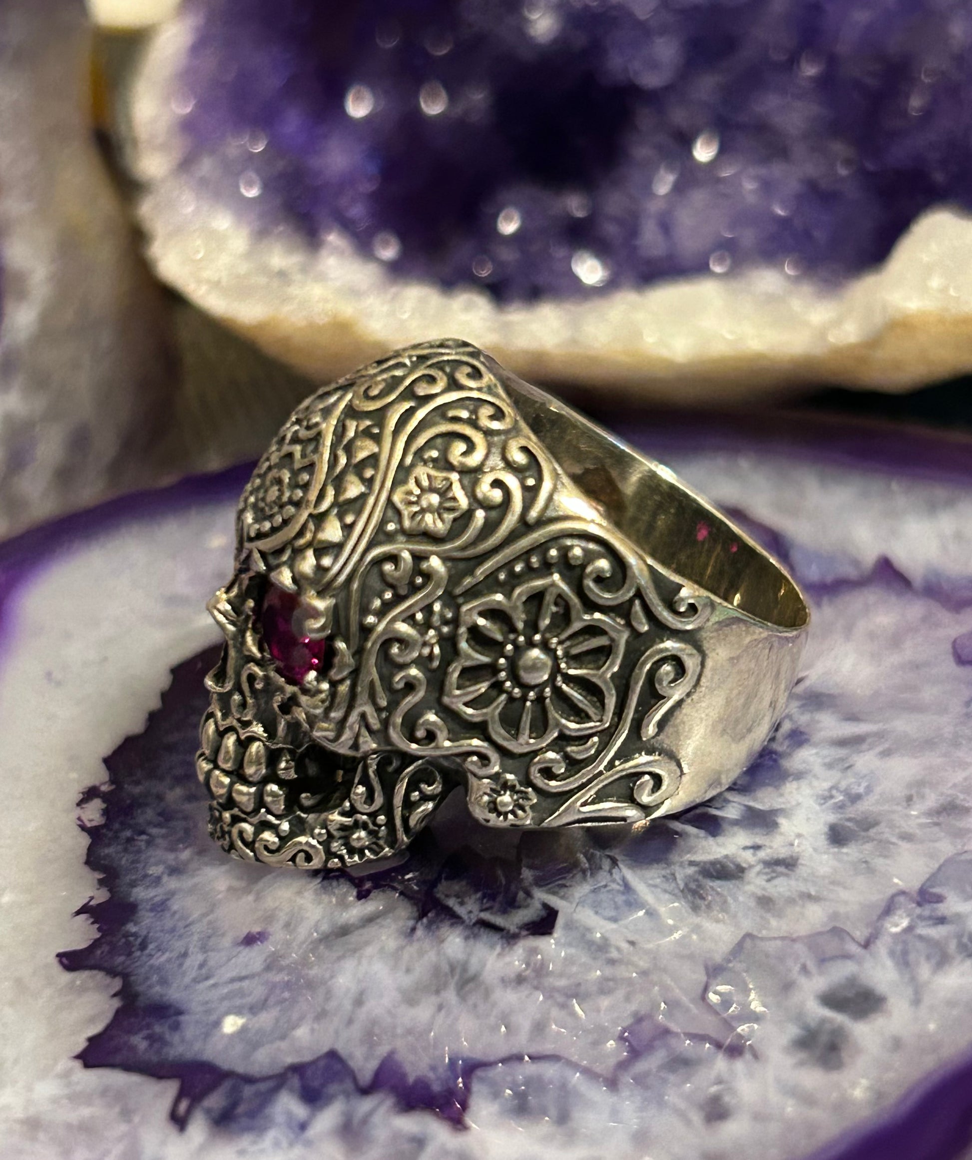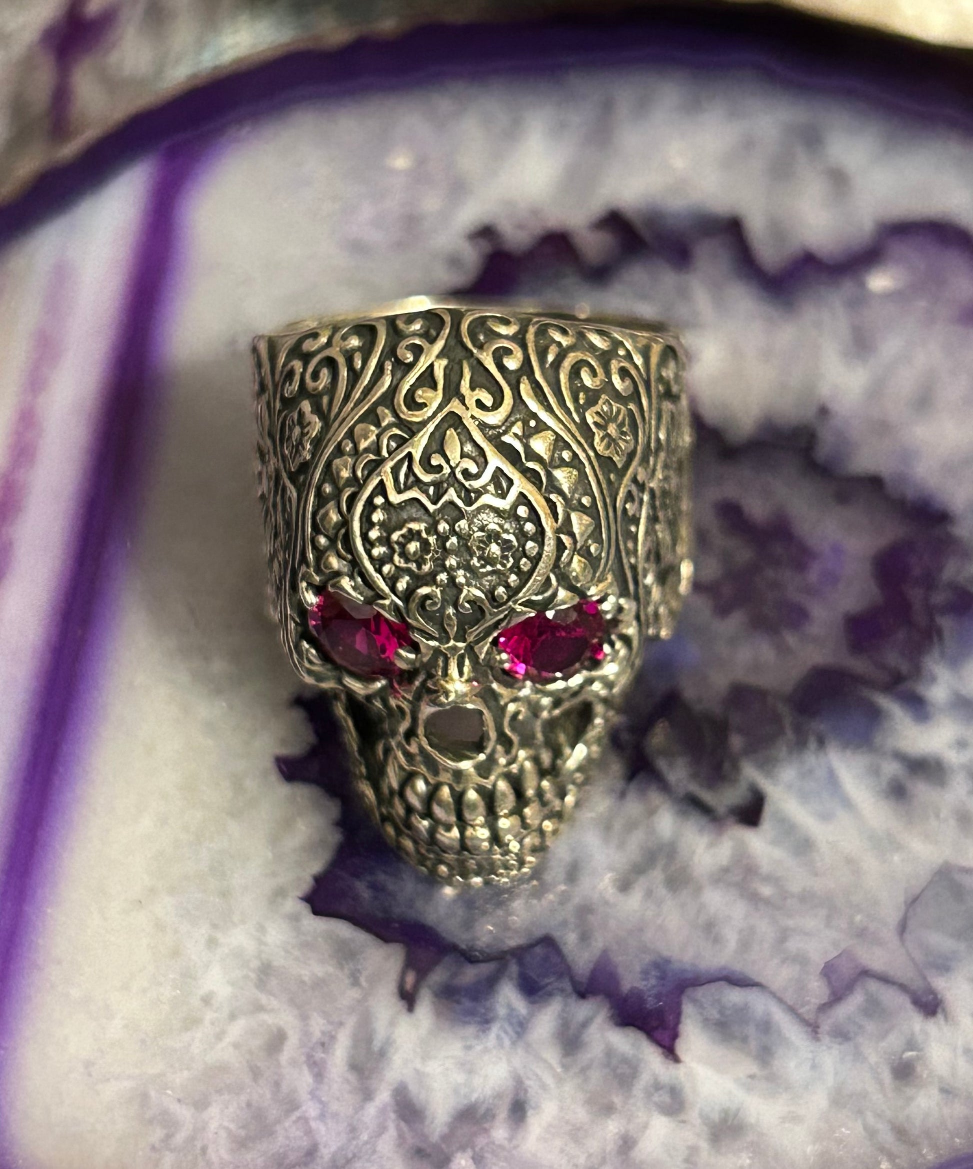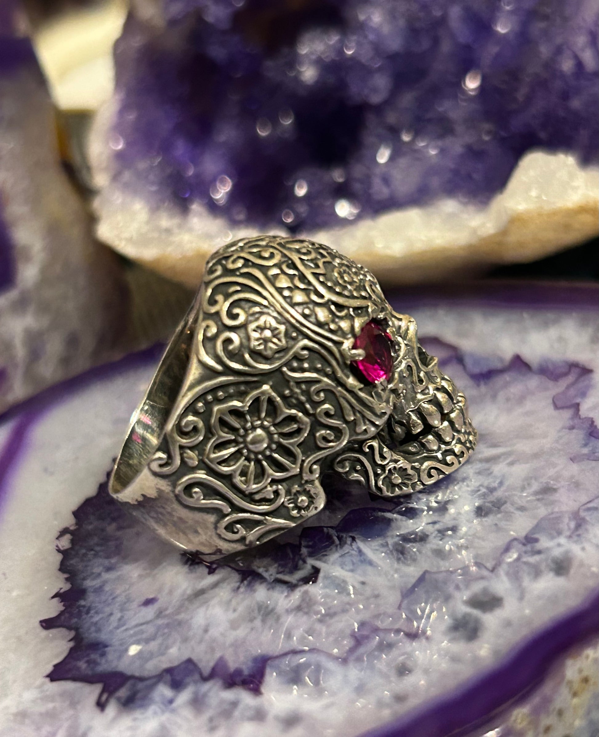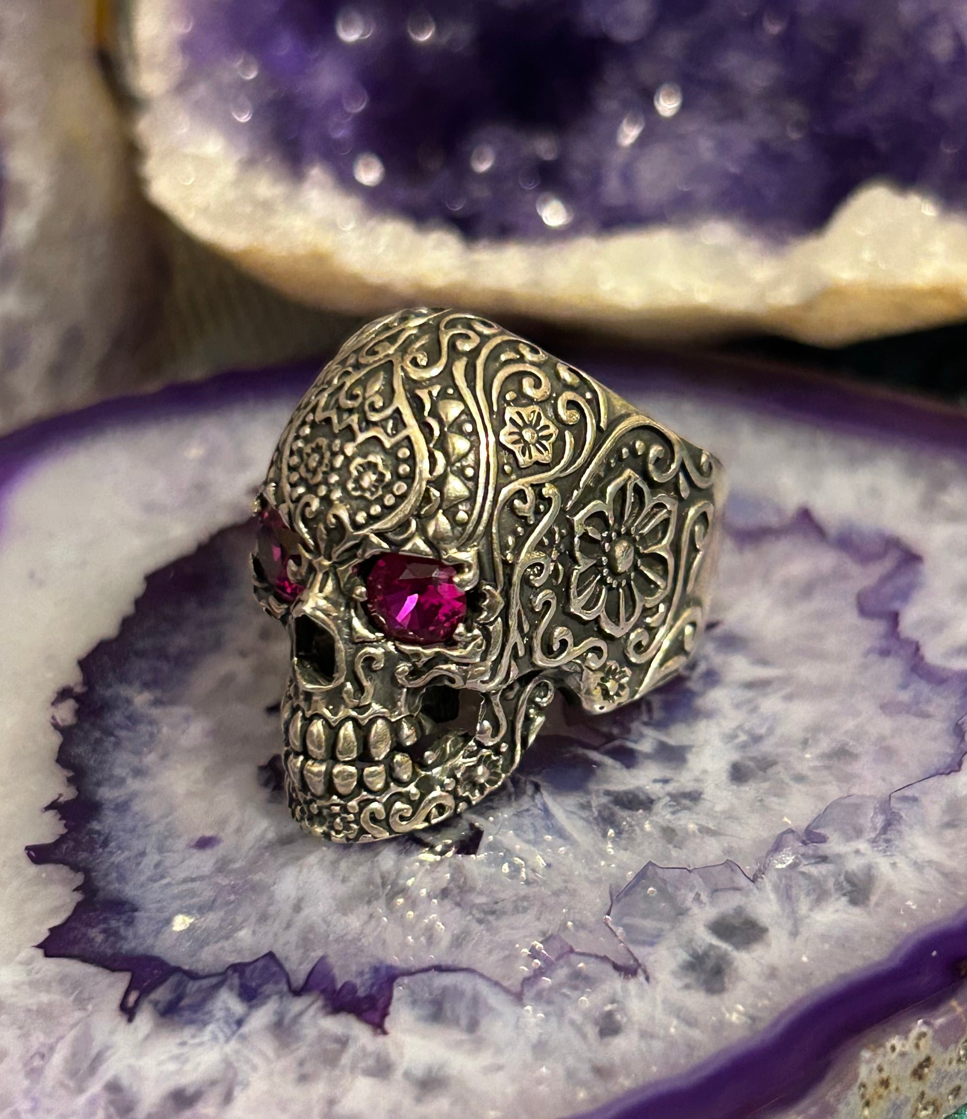 Sterling Silver Sugar Skull With Ruby Eyes Large Skull Ring Size 9