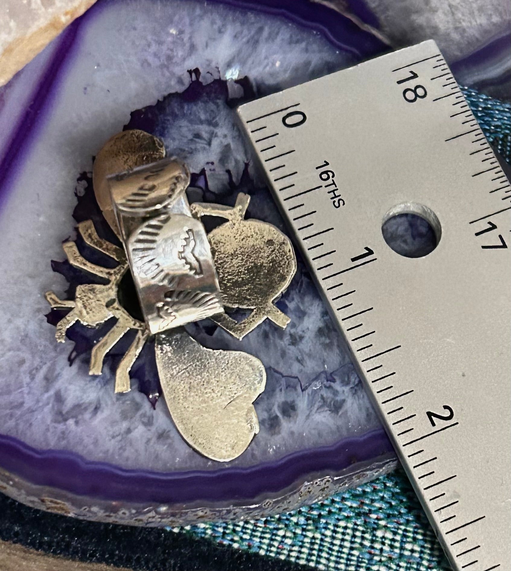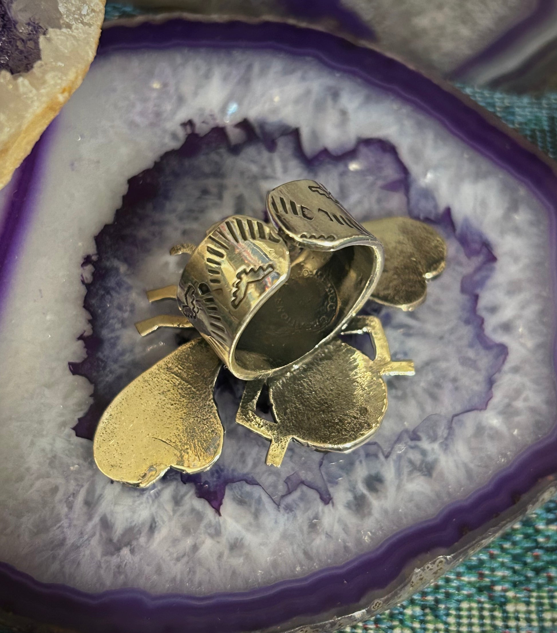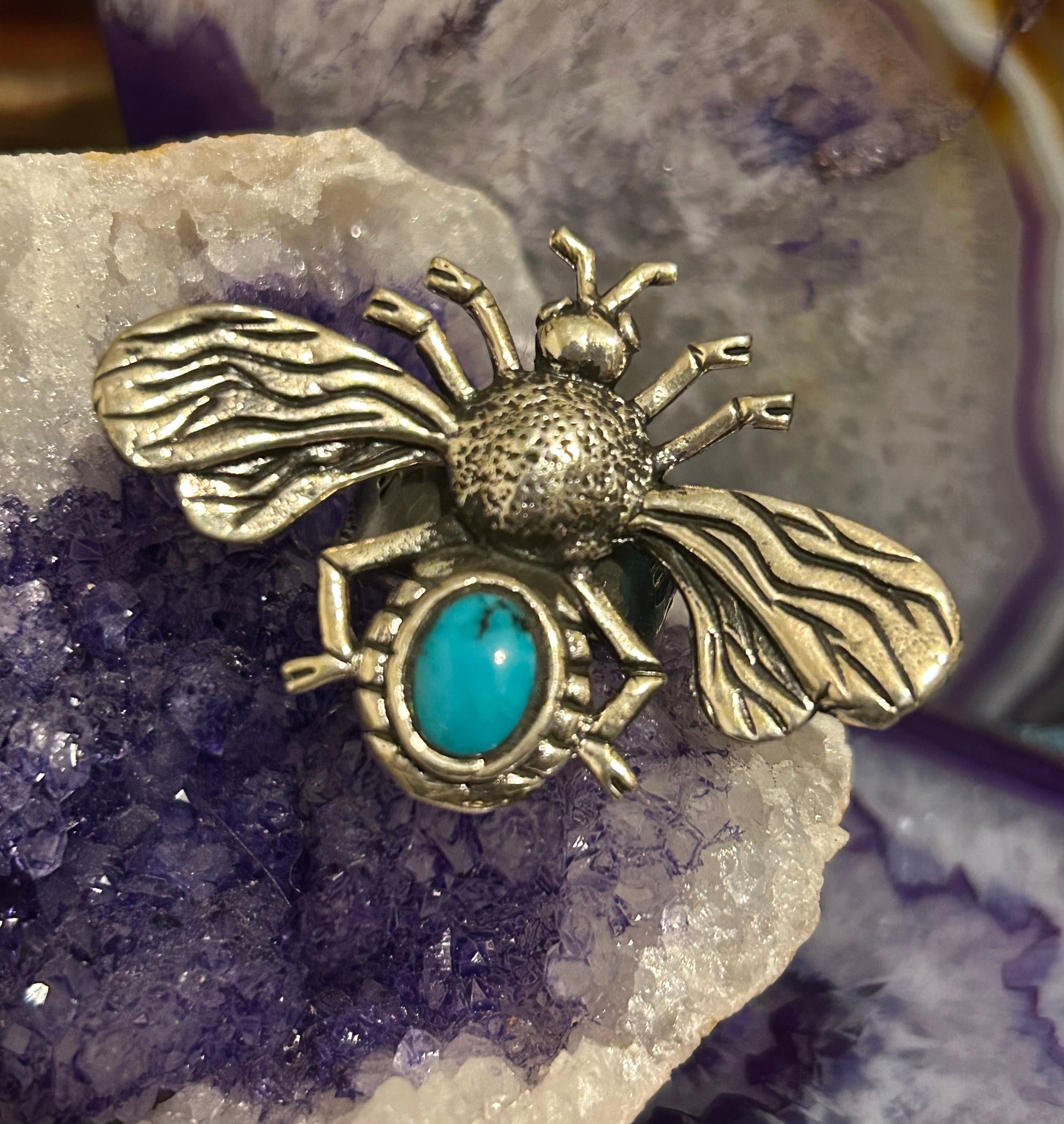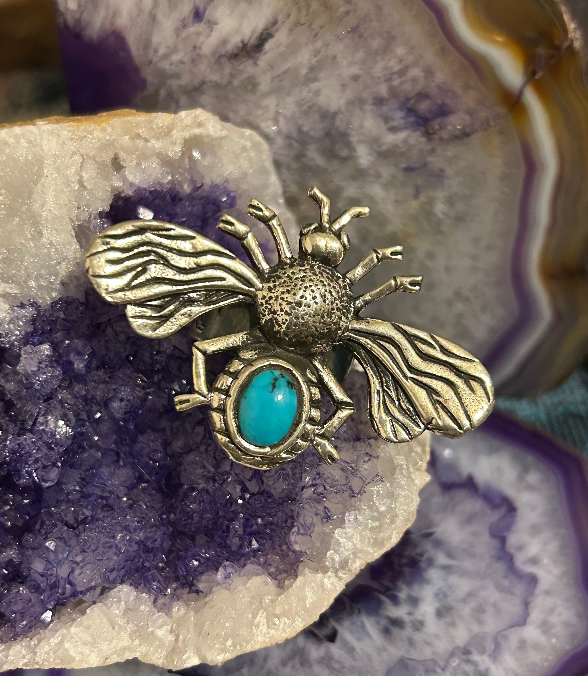 Sterling Silver Taxco Mexico Bee Insect Ring With Turquoise • Adjustable Size 7-9