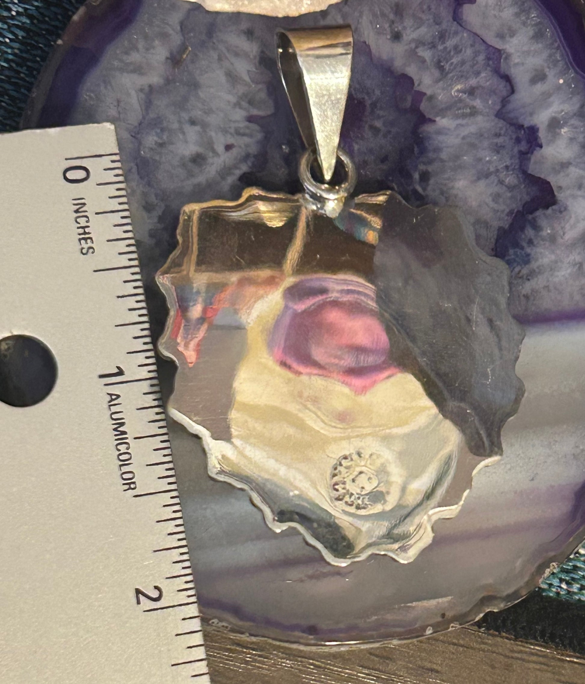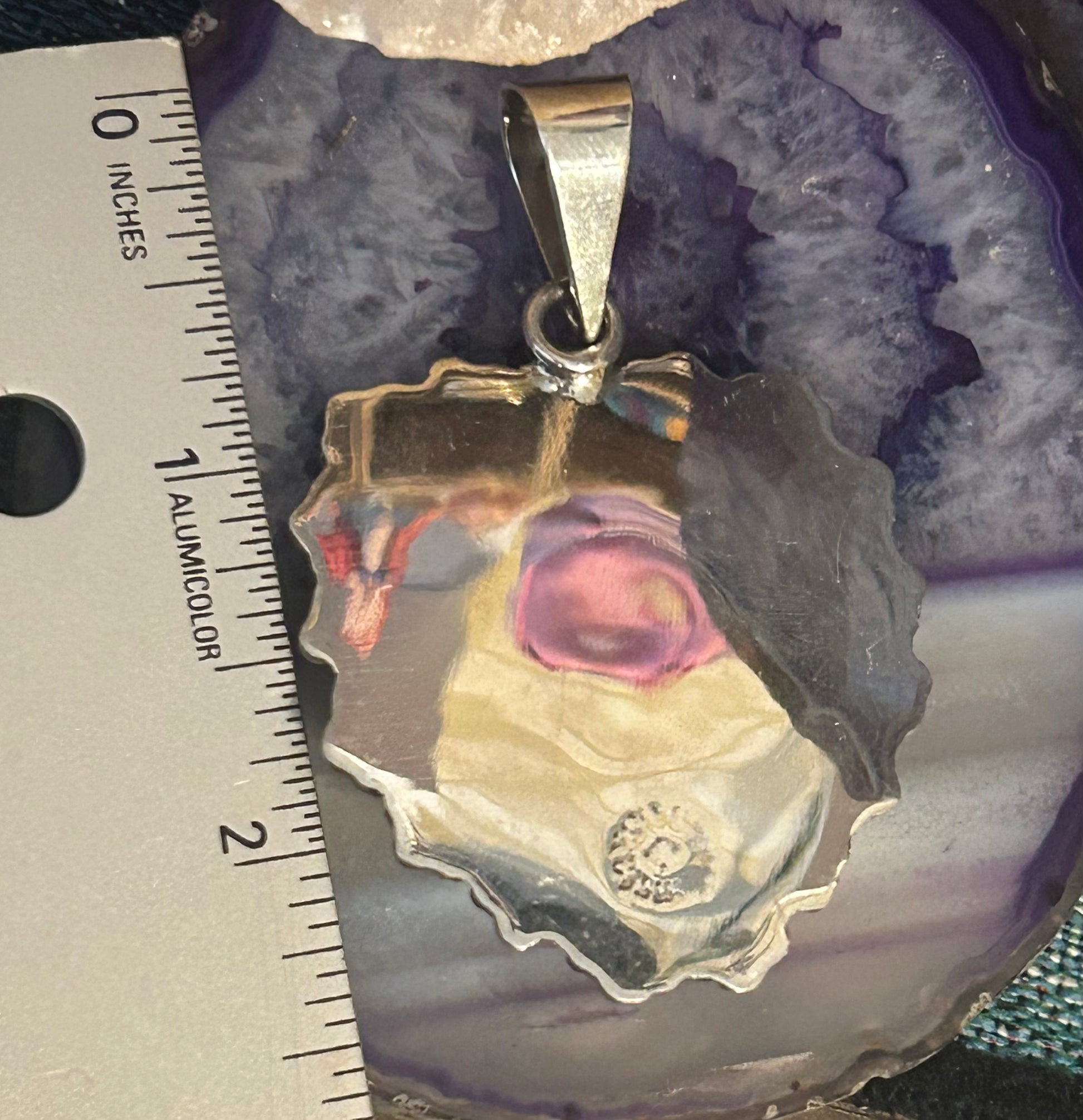 Gorgeous 925 silver pendant, hand made in Taxco, Mexico. We work directly with the silversmiths there. Beautiful 3D accents. Colors on eye made with an enamel finish. See photos for measurements. |