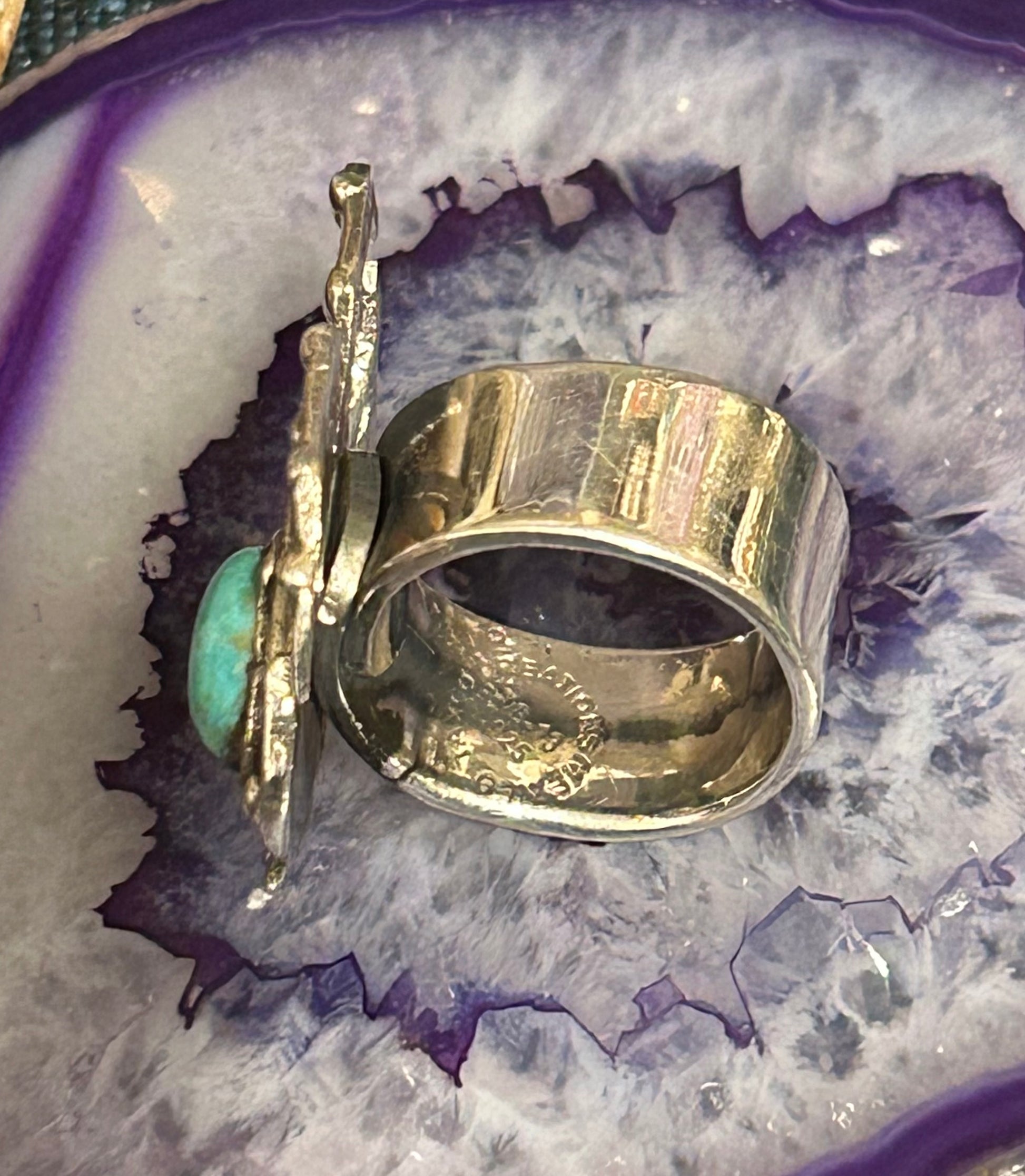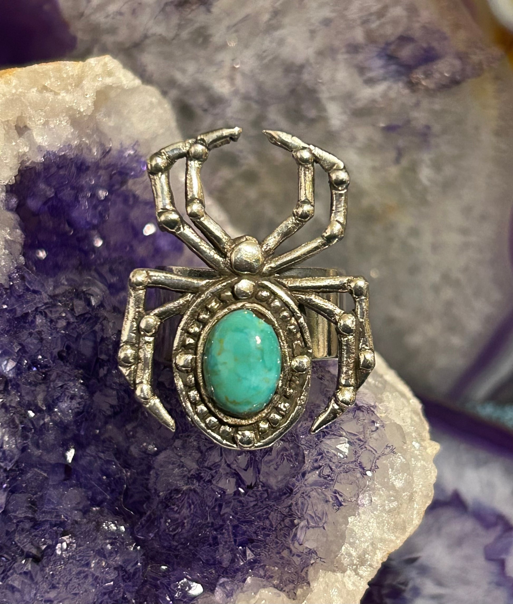 Sterling Silver Taxco Mexico Spider Ring With Roysten Turquoise Adjustable
