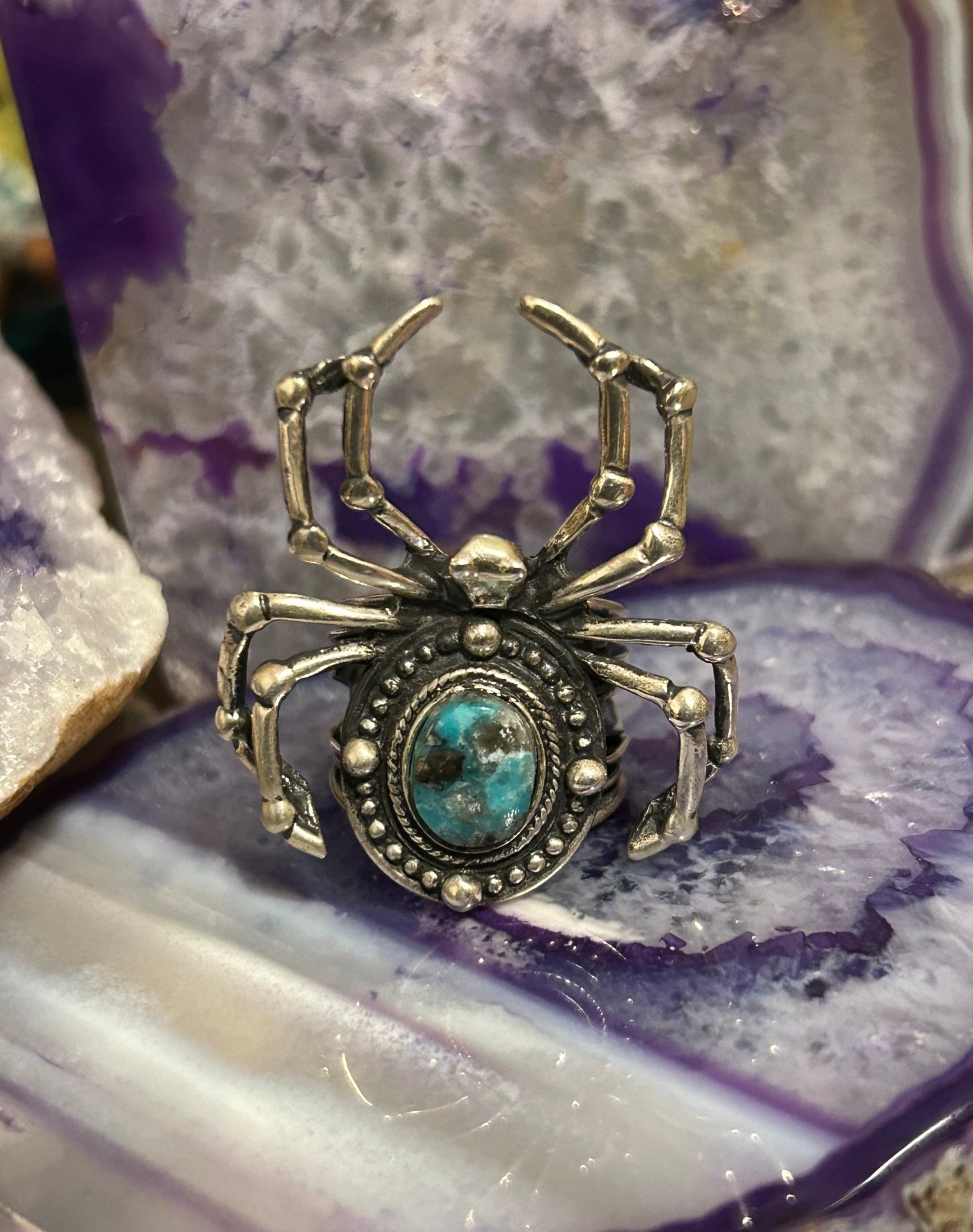 Sterling silver ring hand made in Taxco by silversmiths we work directly with. This one also features a beautiful turquoise stone and 3D spider!
