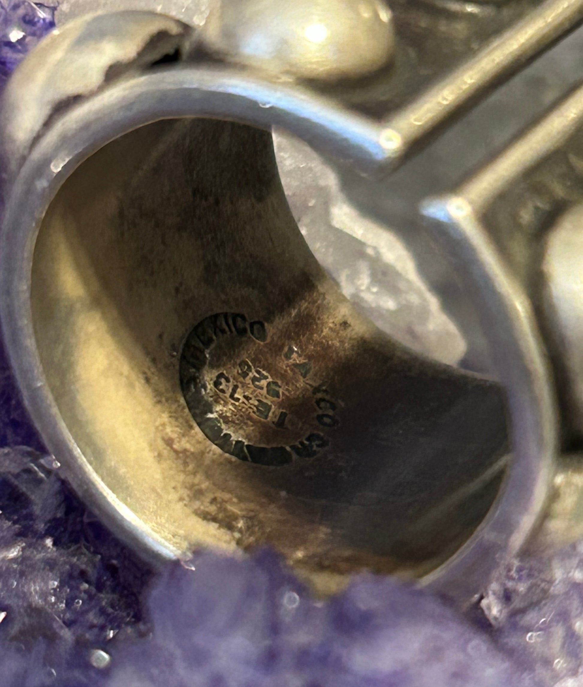 Nice thick Taxco Mexico ball band ring. Pre loved in great condition. Sterling silver 925. Adjustable band fits best sizes 7.25-9. |