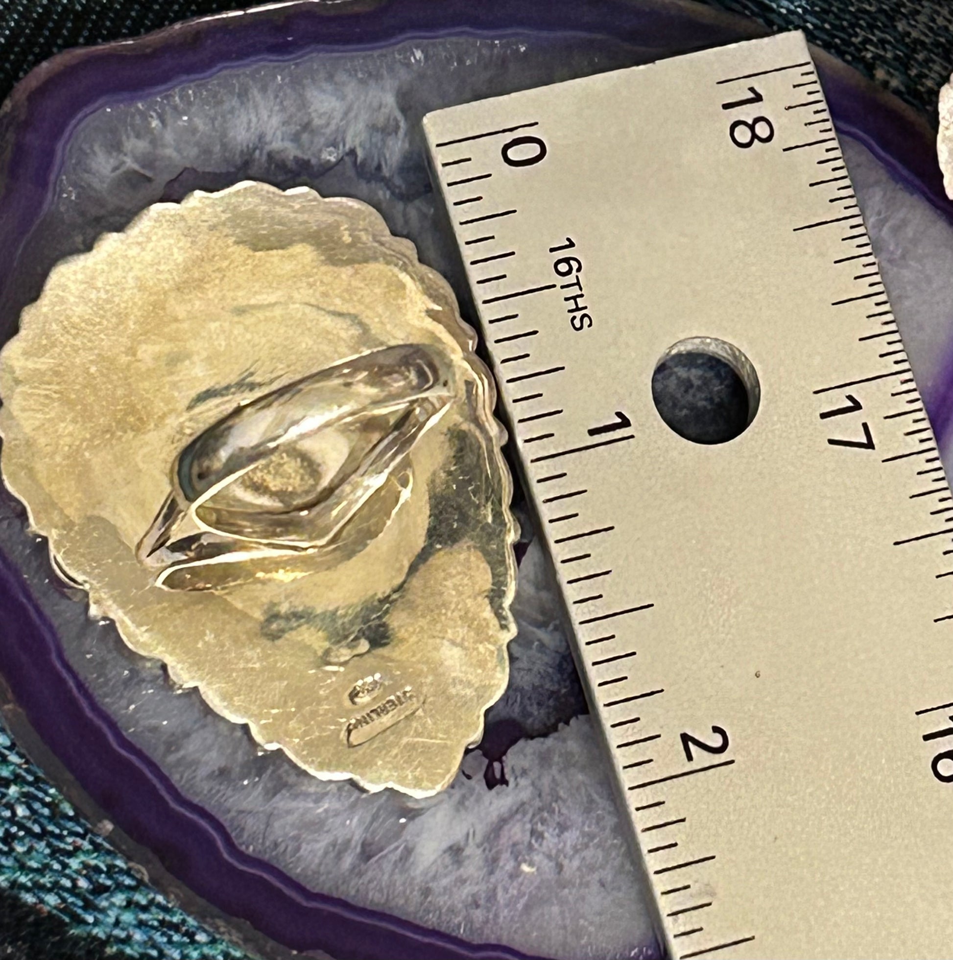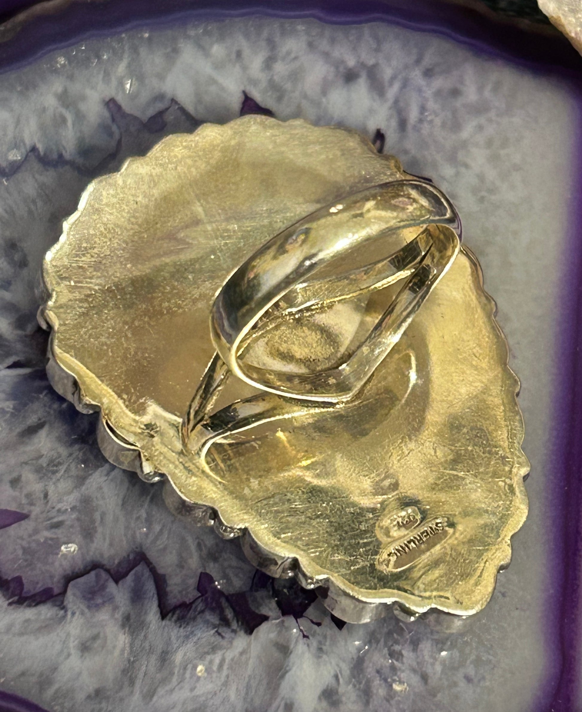 Gorgeous Sterling silver ring with natural turquoise and amethyst stones. Large statement ring, see next to ruler in photos.