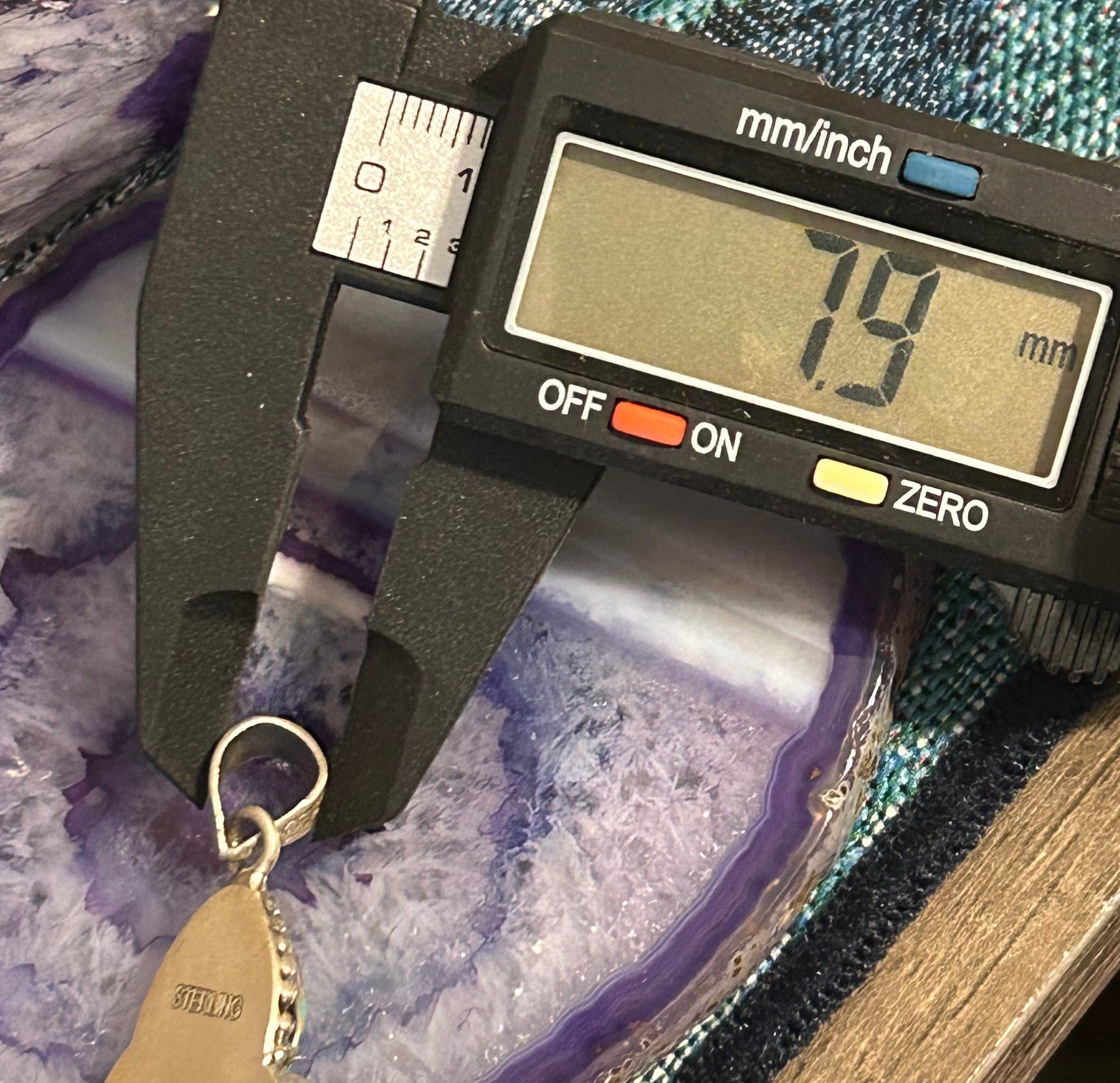 Beautiful sterling silver 925 pendant with mojave turquoise hearts, green turquoises and black onyx hexagon shape stone. A nice long pendant, see next to ruler in photos along with the size of the bale. Carefully sourced and curated by Guz. |