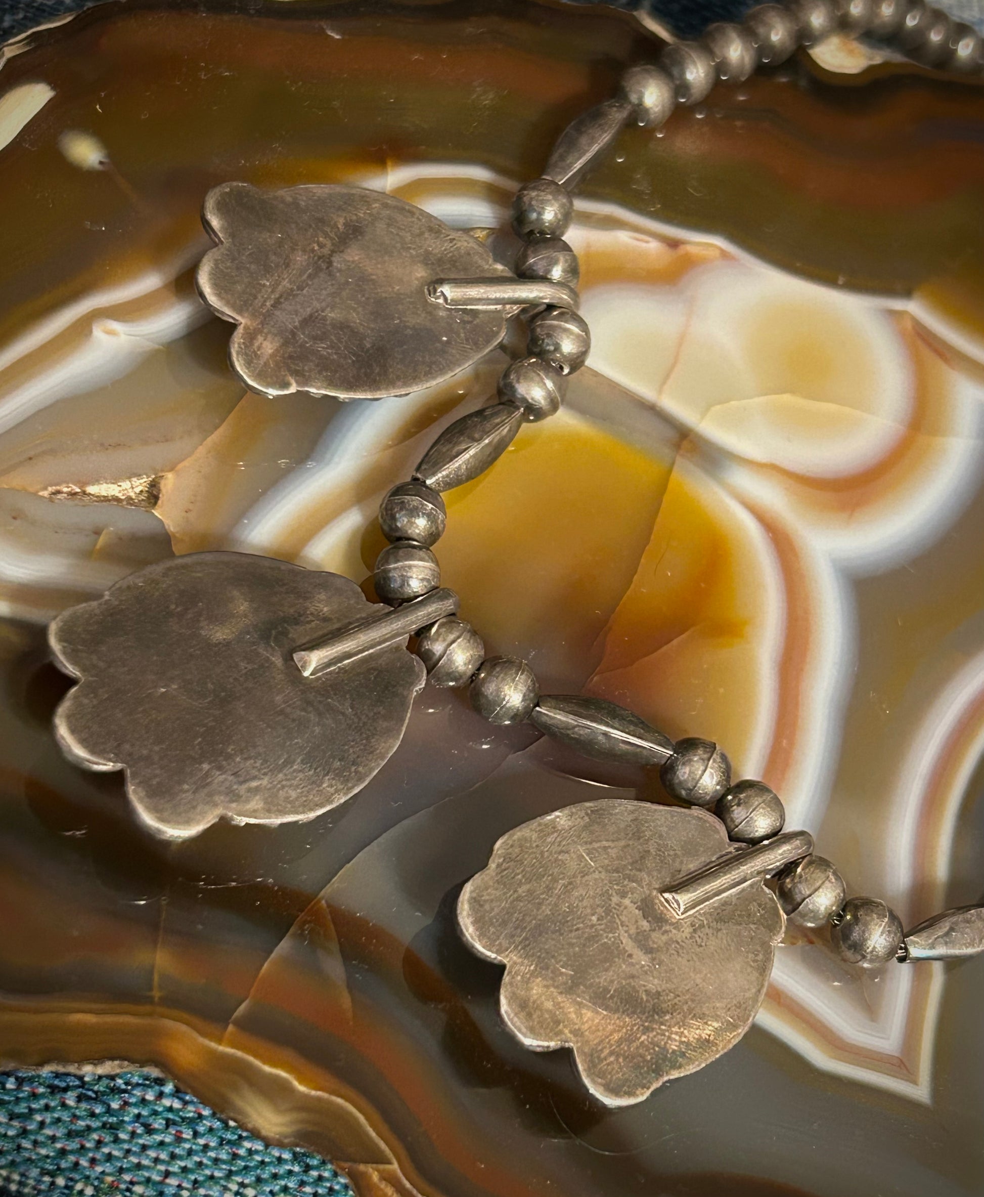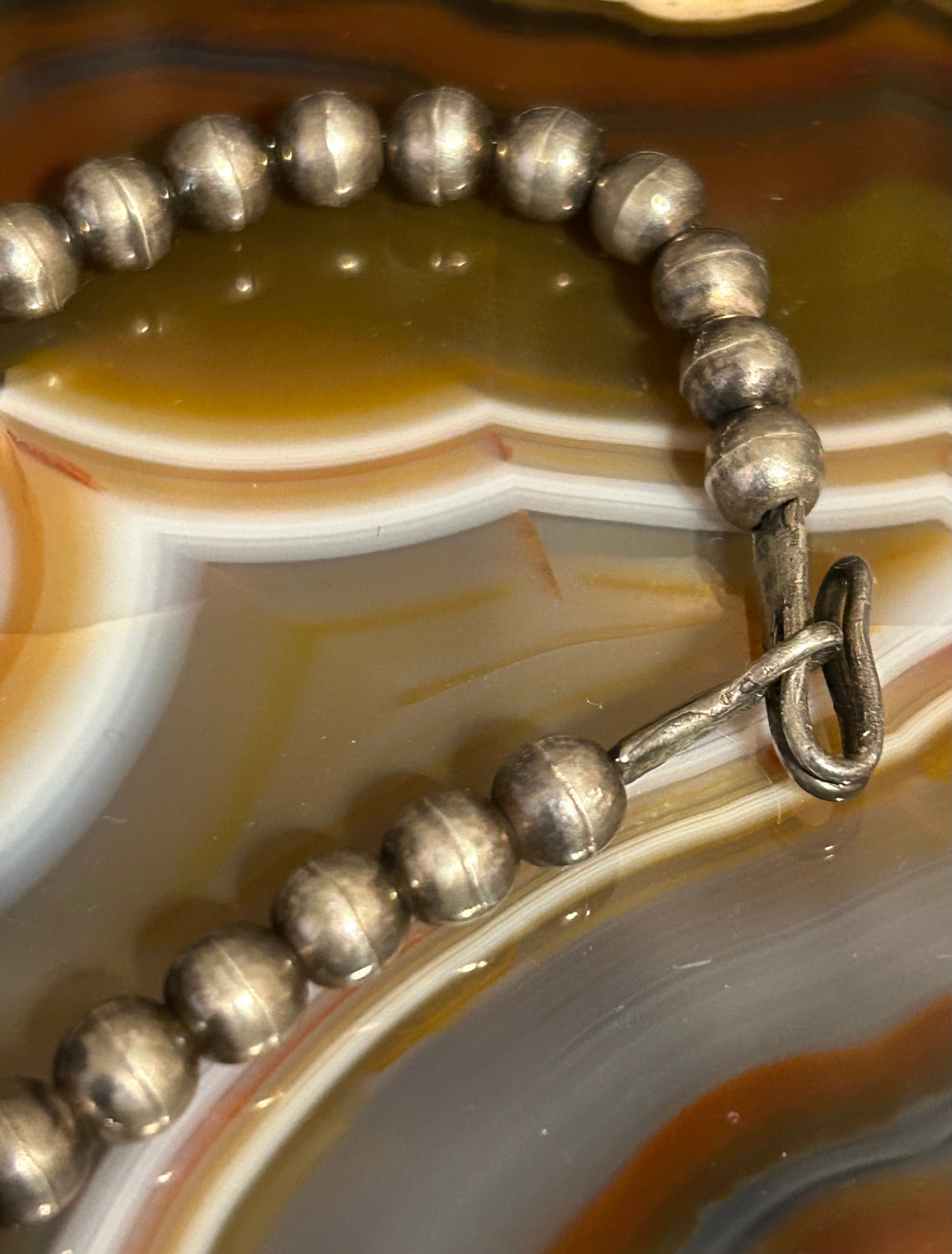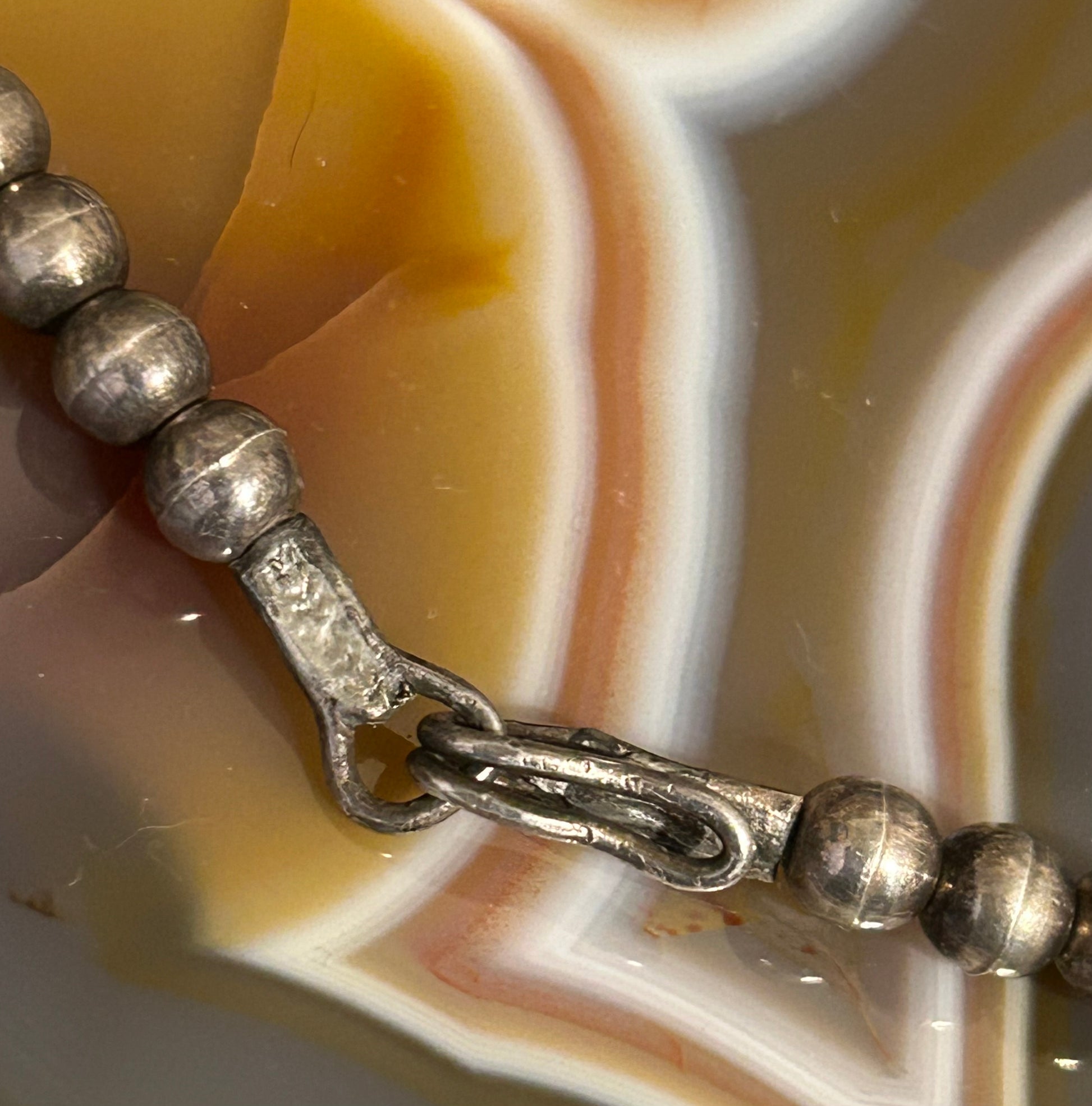 Sterling Silver Vintage Native American Turquoise and Bench Bead Choker Necklace