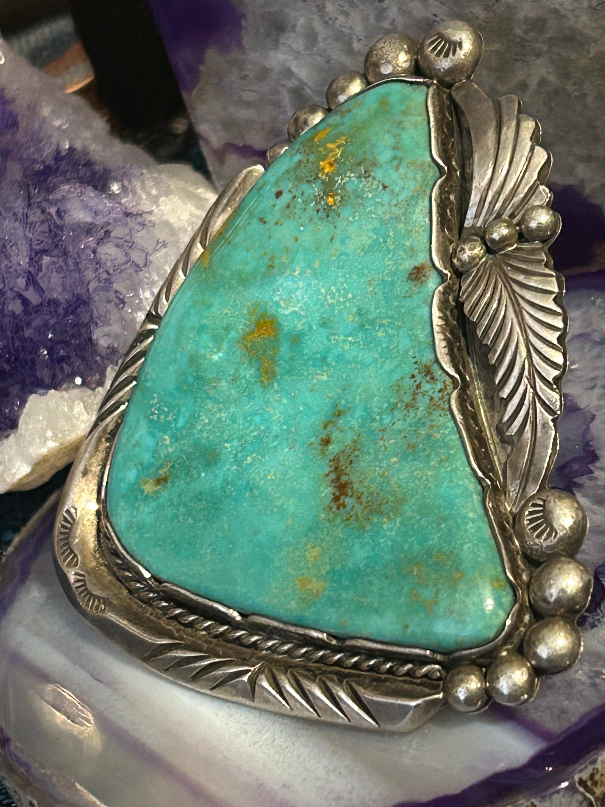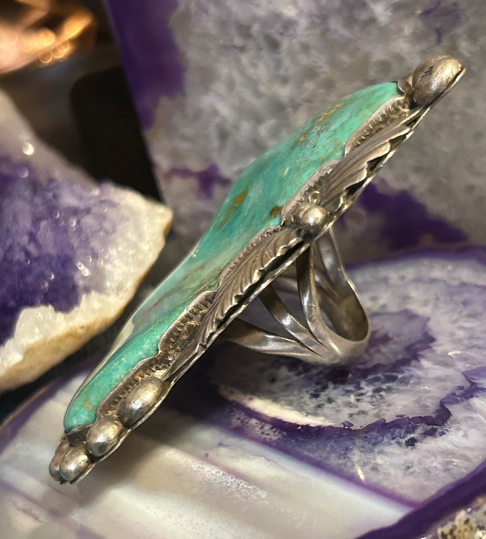 Vintage Sterling Silver Massive Turquoise Statement Ring Size 8.5