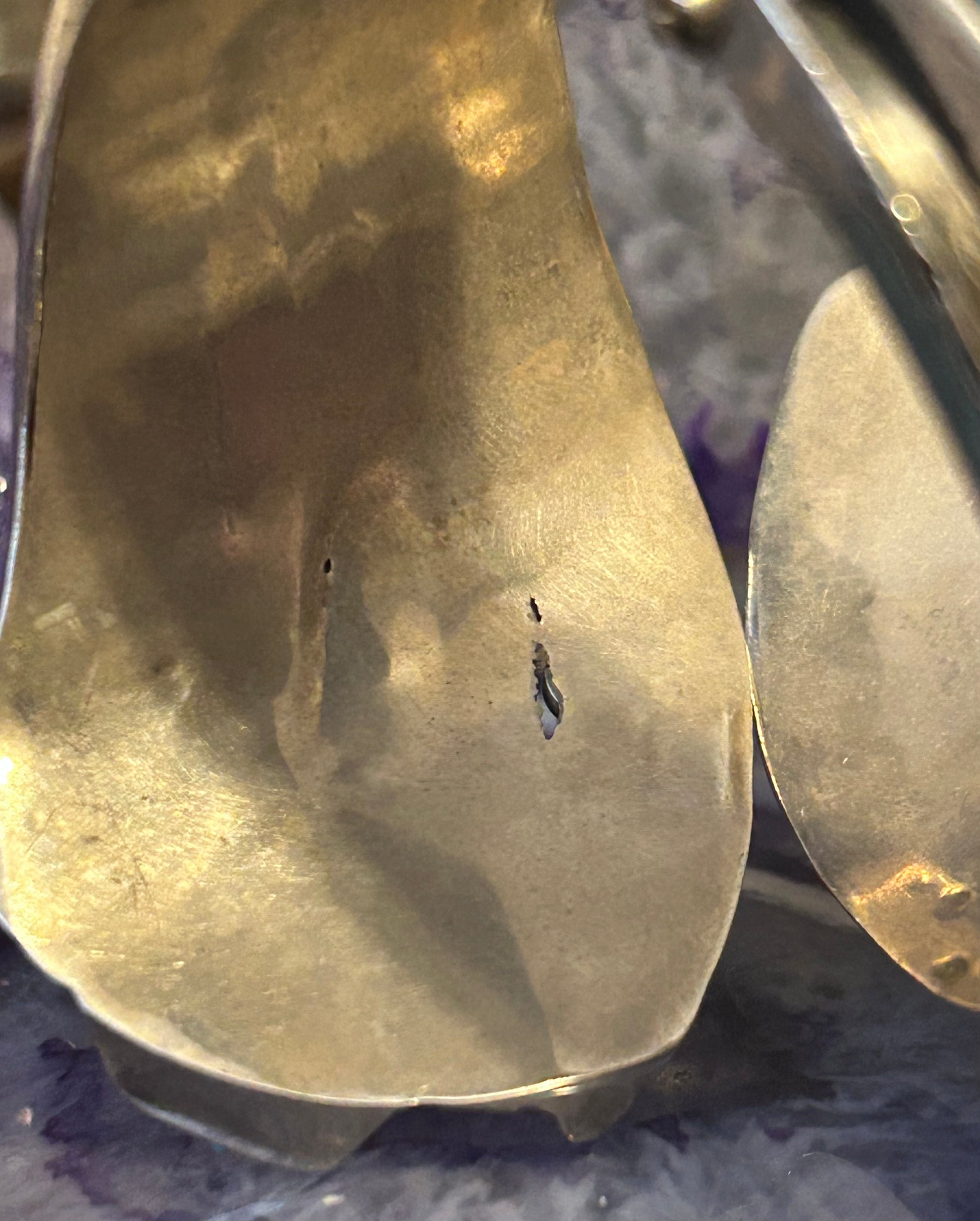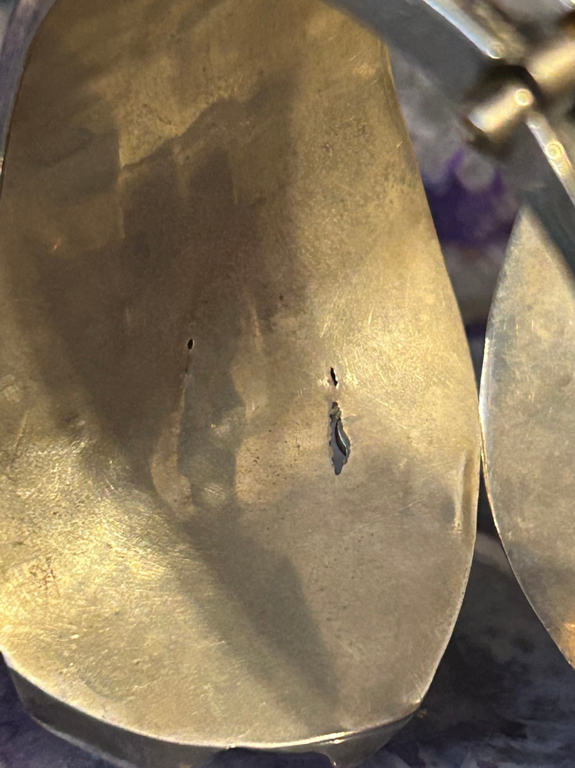 There is a small Knick on the inside due to age and wear but you cannot see it on the outside and does not effect the aesthetic or construction of the cuff.
