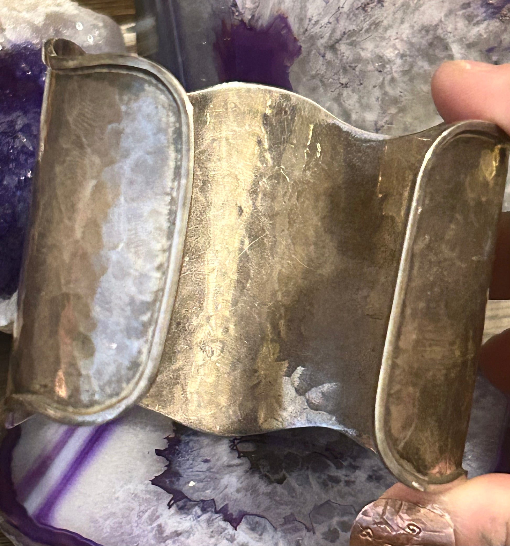 Vintage Sterling Silver Wide Wavey Hammered Cuff Bracelet